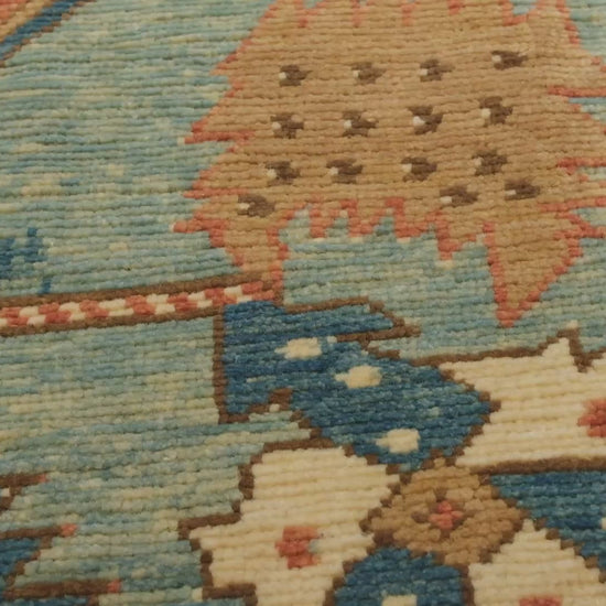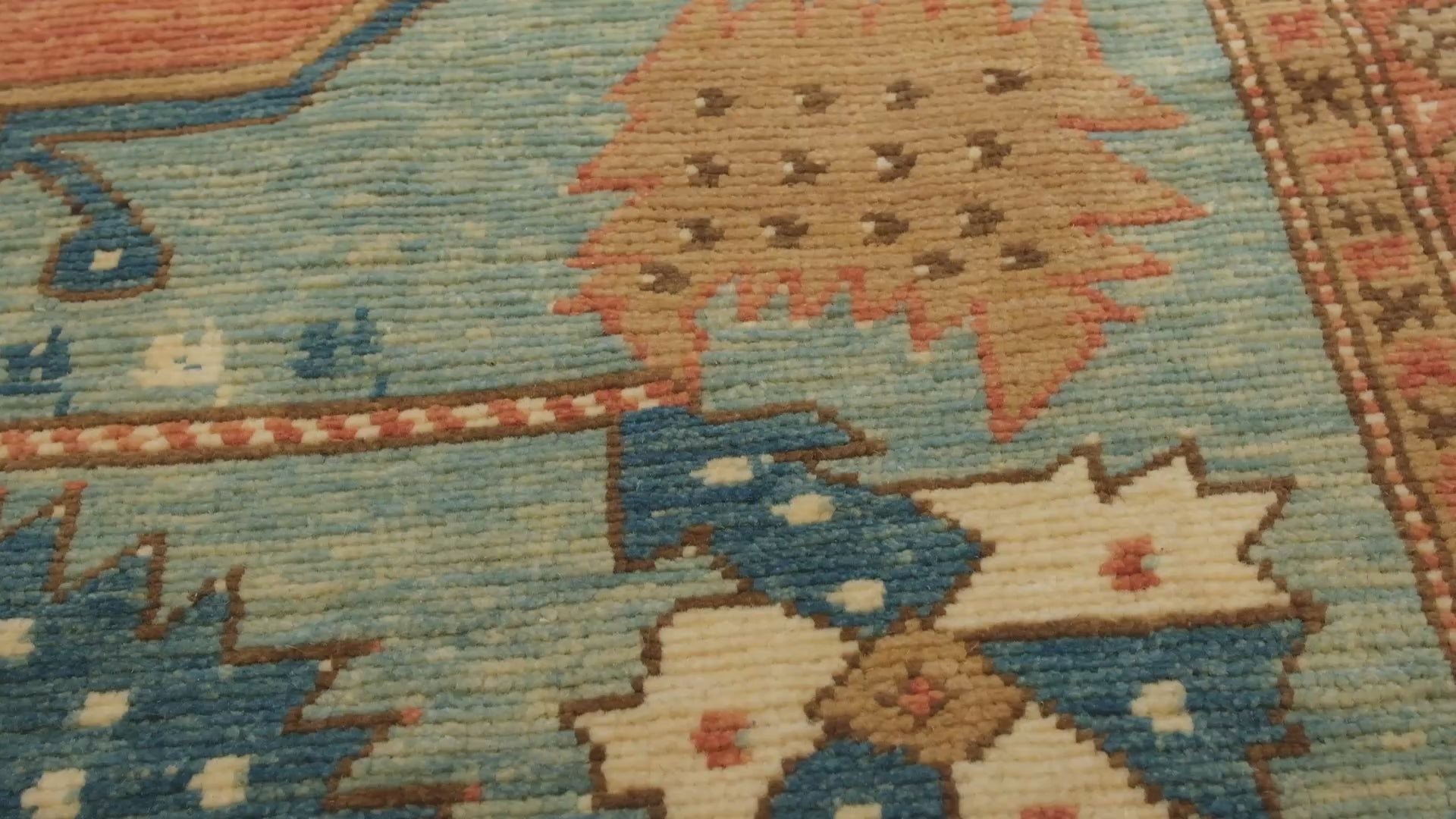 この絨毯は、伝統的な染色方法によって生み出された8色の自然色が調和しています。 Natural Wool Color 320: 羊そのままの色 Pullman Brown 542: クルミの殻 - ヘナ - ザクロの皮 Sunray Color 405: ヘナ Caramel 537: 茶 Congo Pink 306: 茜 Pale Green 439: カモミール - 藍 Turquoise 330: トウダイグサ - 茜 - 藍 - クルミの殻 Cadet Blue 26: トウダイグサ - 藍