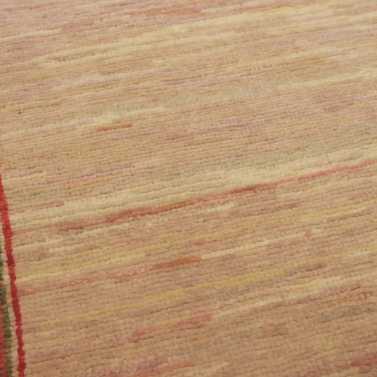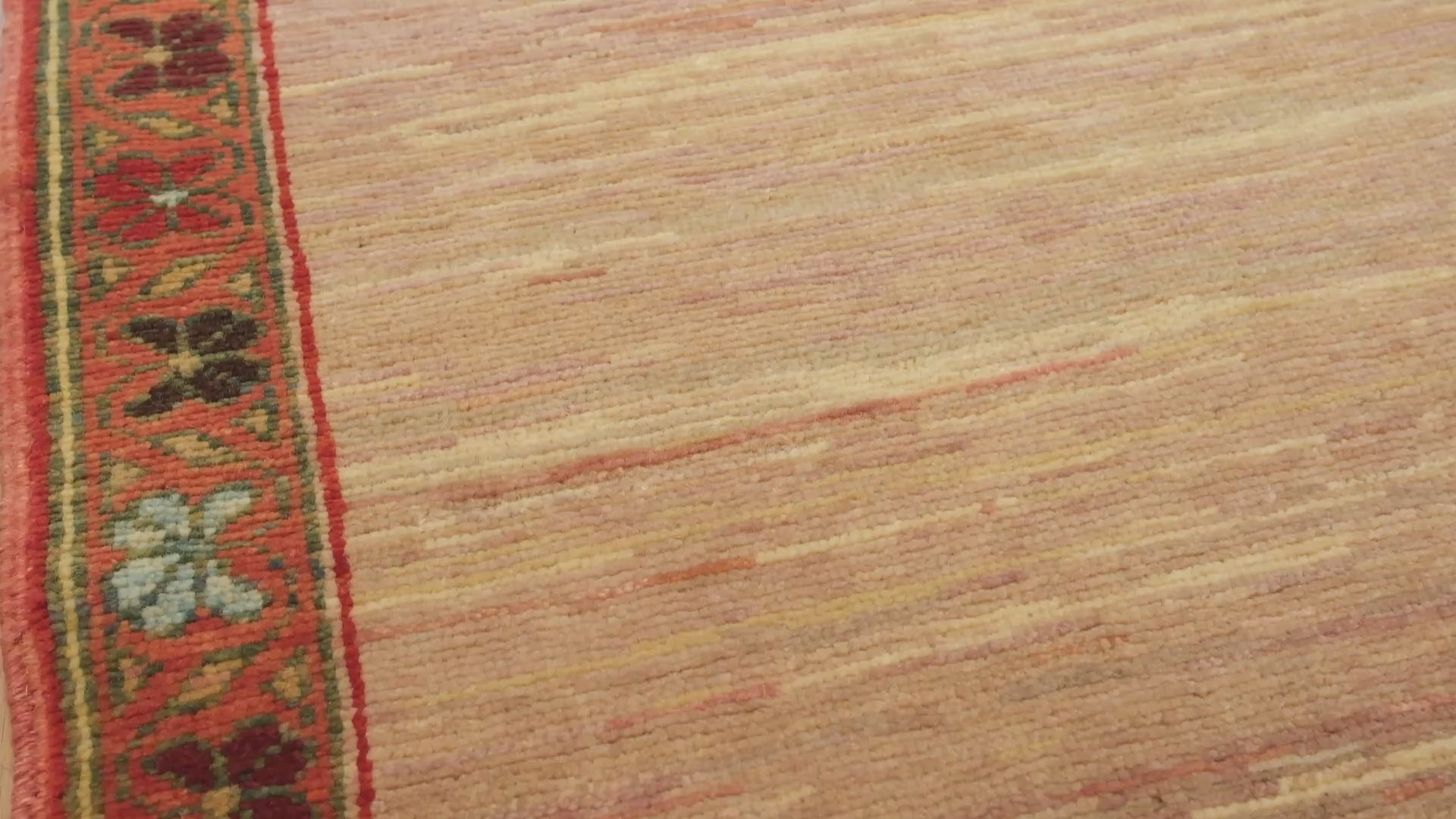 柔らかいピンクの色のラグは、東トルコのアララト・ラグスで手織りされた現代の傑作です。伝統的な織り技術と現代的なデザイン美学を巧みに融合させています。伝統的な方法で天然染料を用いた手紡ぎの糸で作られ、特に弊社のシグネチャーブレンドのピンク、メロン、ロシアン・グリーン、インペリアル・レッドの色調が際立っています。それぞれの色は天然の素材から抽出されており、ピンクとレッドには茜、緑にはヘナとインディゴが使用されています。このラグは古代の芸術を現代の感覚で再現したもので、伝統的なモチーフに新鮮でエレガントな風合いを加えています。