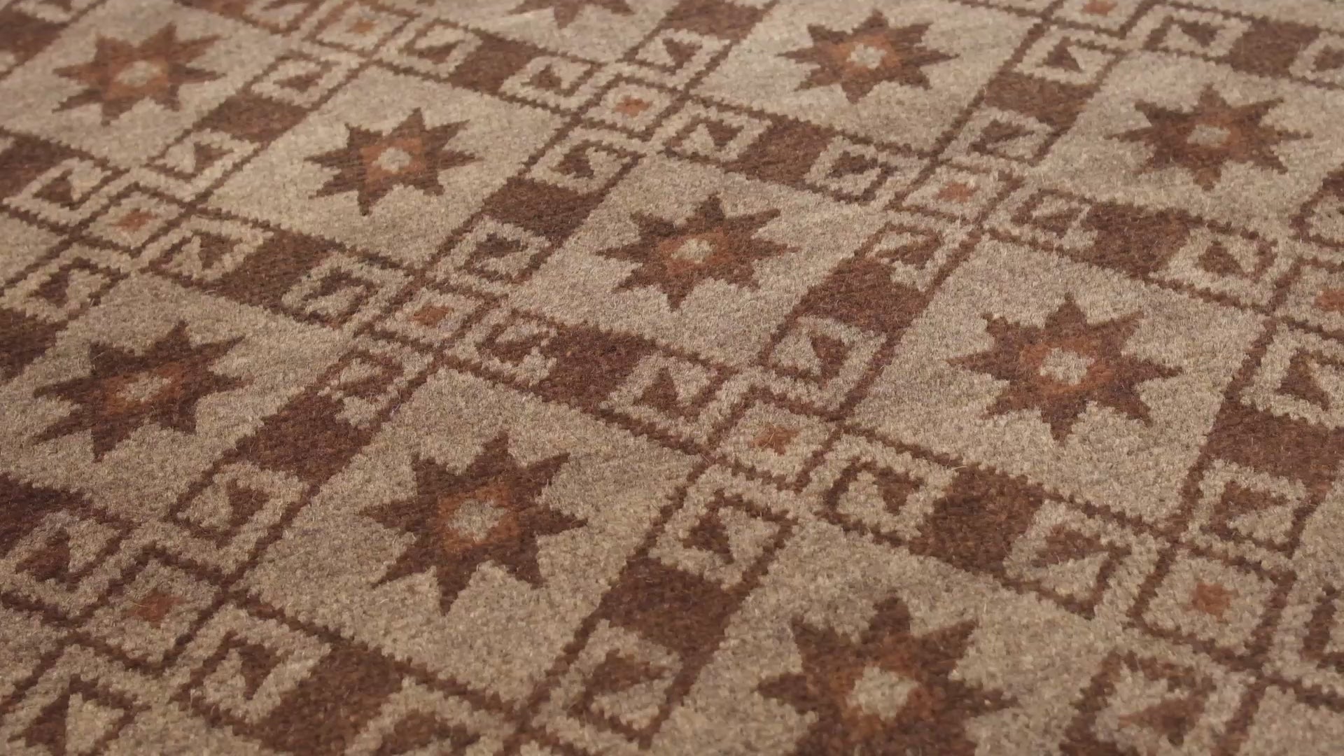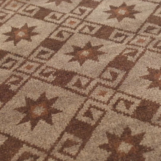 この絨毯は、伝統的な染色方法によって生み出された3色の自然色が調和しています。 Rare Grey 105: 羊そのままの色 Natural Wool Color 37: 羊そのままの色 Burnt Coffee 102: 羊そのままの色