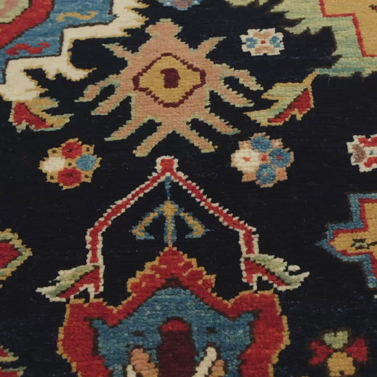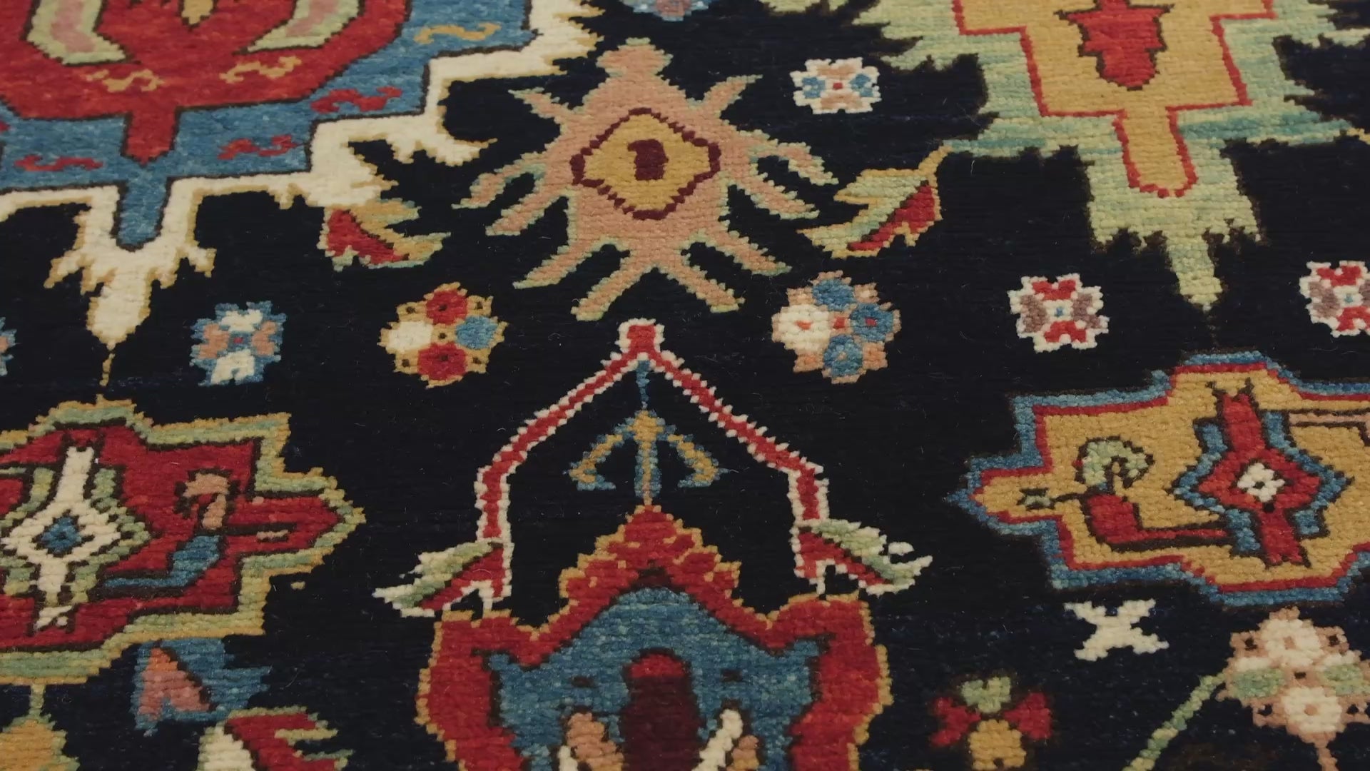 この「エスファハン風パルメットラグ」と名付けられた現代の逸品は、17~18世紀の北西ペルシャおよびコーカサス地方のデザインを元に、歴史的な優雅さを現代的な解釈で活気づけています。東トルコに拠点を置く我々の職人は、古代から伝わる織技法を用い、最高品質の天然染料を使用しています。使用されている色は、インディゴとザクロから得たネイビーブルー、ザクロ、茜根、トウダイグサから得た茶色、茜根とクルミの殻から得たダークサーモン、そしてヘナから美しく取り出されたサンレイカラーを含む全12色、この4つの主要な色を中心に展開されています。ハルシャングパターンに敬意を表し、盾のようなパルメットが昇る構図と葉のような翼が描かれた手織りの復元版は丁寧に作り上げられています。