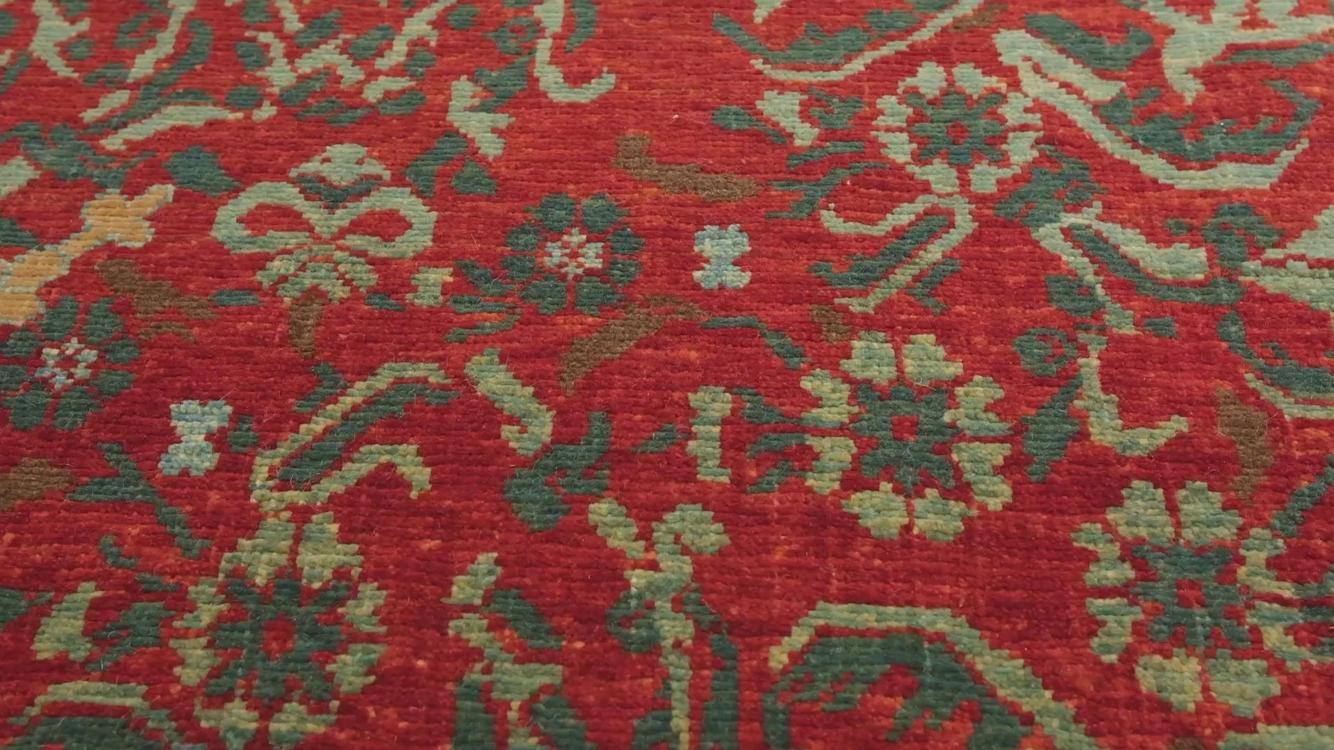トルコ宮廷製作絨毯は、16世紀にオスマン帝国によって設立されたエジプトの工房で織られた歴史的な傑作を現代に再現したものです。この新しい絨毯は、伝統的な技術と現代の職人技を融合し、東トルコのアララト絨毯の職人によって手織りされています。当社のデザイナーは、おそらくイスタンブールで作成され、その後カイロに送られた紙の図案から、オリジナルのデザインを熟考して解釈しました。中央のメダリオンはマムルークの影響を反映しており、この工芸の最も初期の例のいくつかを守っています。絨毯は、マダーレッド(茜)、イエローグリーン(ヘナと藍)、サンレイカラー(ヘナ)、エメラルドグリーン(カモミールと藍)を含む8色のパレットを採用しています。これらの天然染料は、絨毯の歴史的な起源に敬意を表しつつ、活気に満ちた調和のとれた視覚効果を生み出します。