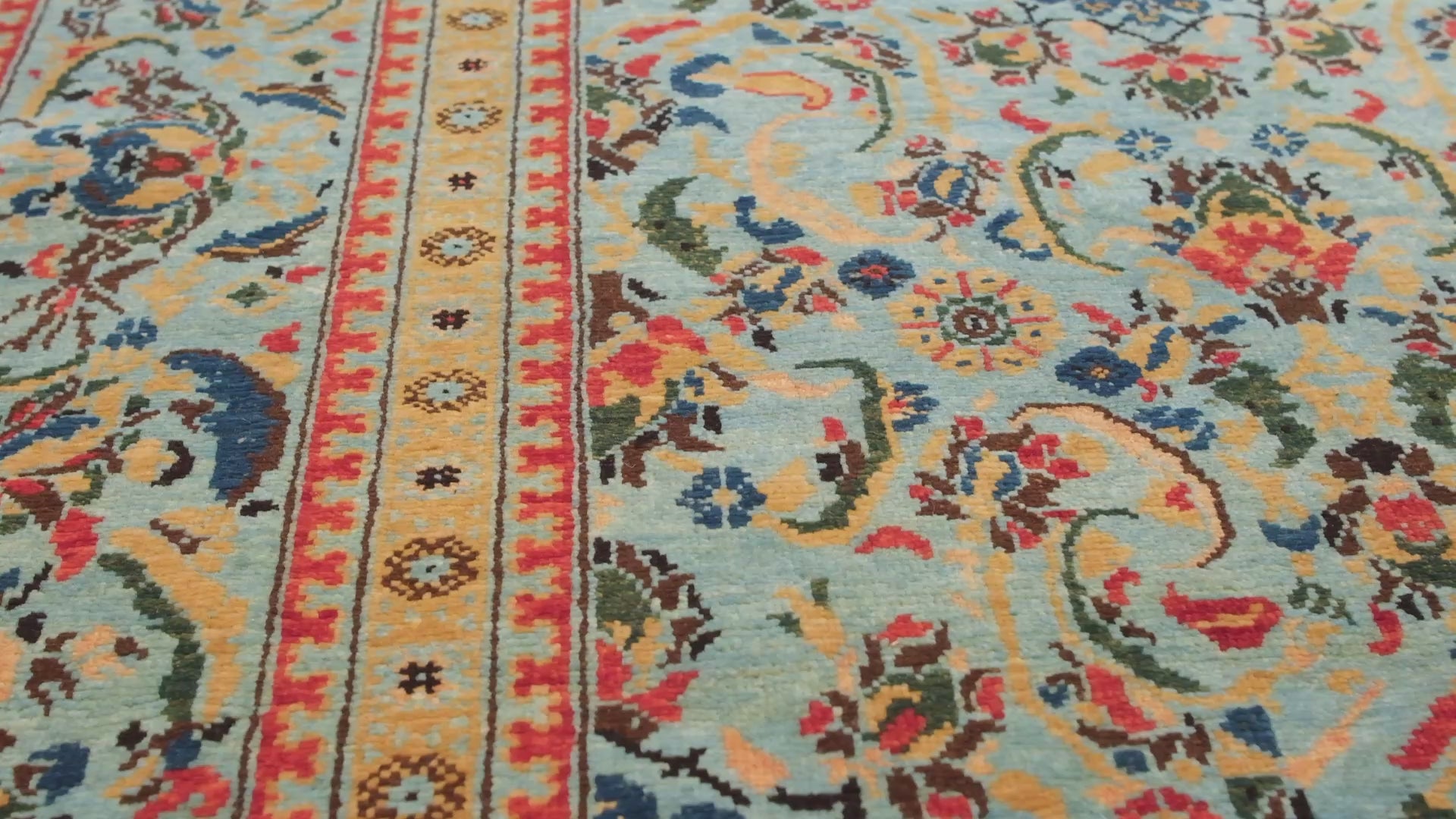 この豪華なトルコ宮廷製造ラグは、16世紀にオスマン帝国の指導のもとエジプトの工房で織られた華やかなカーペットを現代的に再解釈したものです。1517年のオスマンリトルコによるエジプト征服後、イスタンブール宮廷の厳格な要求に深く影響された新しいスタイルの進化が始まりました。東トルコのアララットラグの職人によって丁寧に製作されたこのラグは、伝統的な手織り技術を用い、ヘナ、インジゴ、茜、自然の羊毛の色を使用しています。カーペットは、ガーネーション、チューリップ、ヒヤシンス、ユリ、ボタンなどの花々と、ランセットリーフやパルメットと入り組んだ豊かな使用が特徴で、トルコのタイルや織物に見られるモチーフを反映しています。デザインはメダリオンを中心に配置し、しばしば角に繰り返され、遺産と調和し、現代の趣味にも訴えるビジュアルを生み出しています。