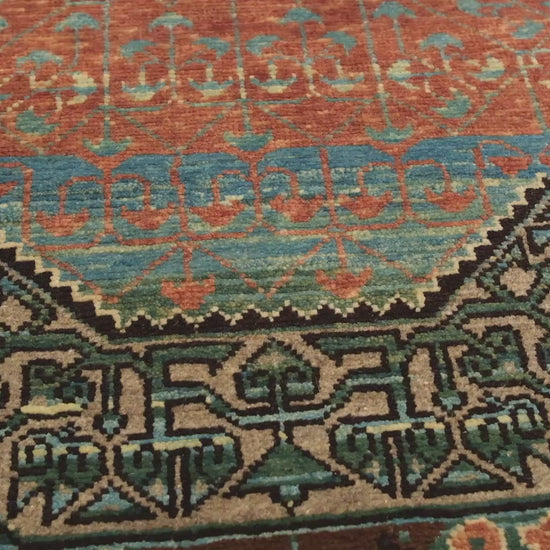 このカスプメダリオン付きマムルークラグは、東トルコのアララトラグによって手織りされた現代的な復活作品で、16世紀初頭のカイロの豊かなタペストリーの伝統に触発されています。権威あるC.L.デイビッドコレクションからのデザインで、かつてマムルーク朝の王宮を飾った歴史的な深みと複雑な芸術性を呼び起こします。トルクメン地域からエジプトに伝わったとされる象徴的なカスプメダリオンモチーフが、このラグで自然な色合いと正確な幾何学的配置で解釈されて再現されています。7色の調和のとれたブレンドを展示し、マダールート染料のサーモン、自然な羊の色のダークブラウンとバンブーベージュを主に特徴としています。伝統的な対称的な結び目と、カイロの工房で一般的なS撚りウール構造を現代の感覚に適応させながら、歴史的な対応物の本質と真正性を保持しています。
