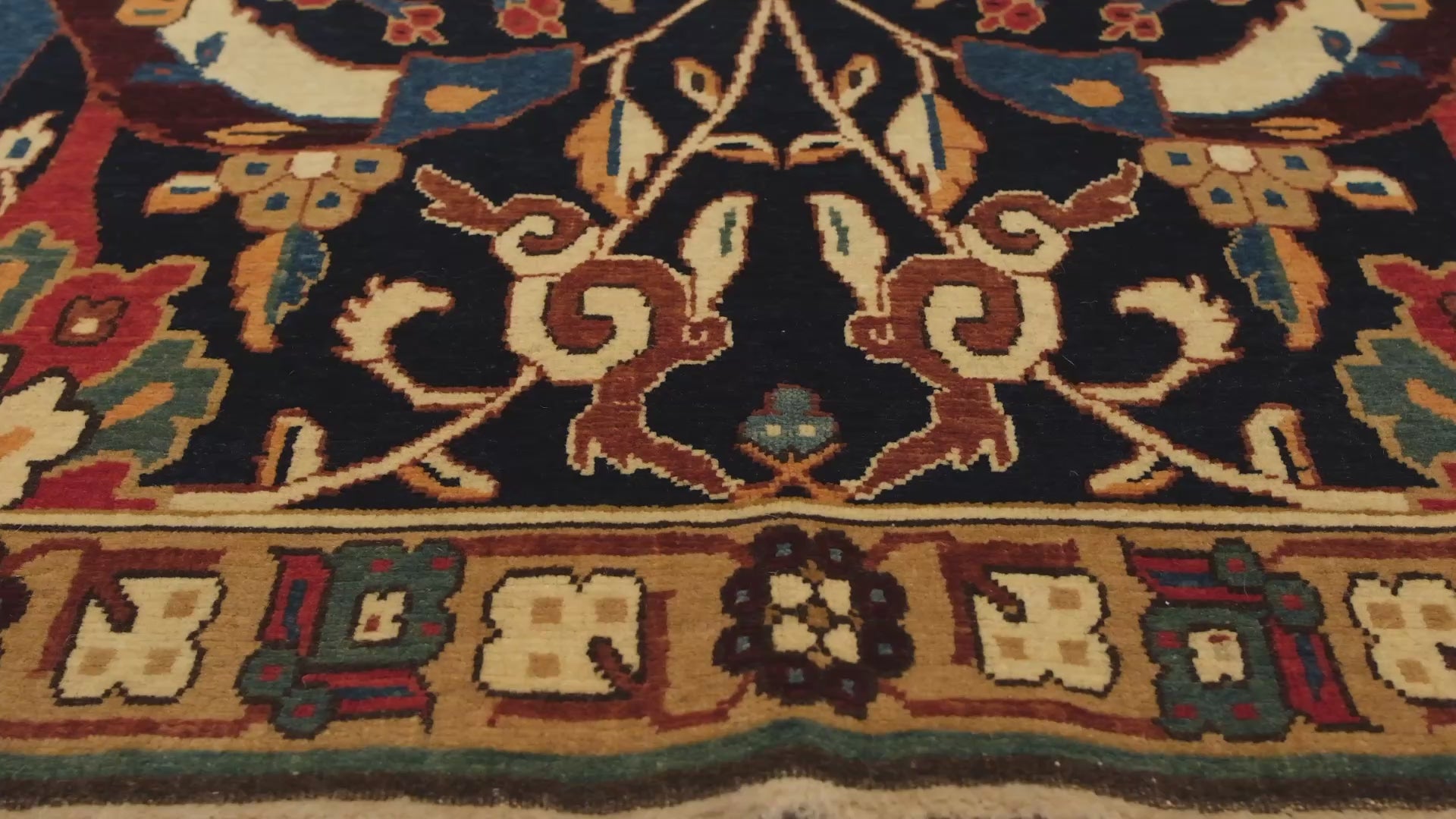 ペルシャ・サファヴィー朝期(17世紀初頭)のキルマン地方(Kerman)で制作されていた伝説的な「花瓶(Vase)技法(Vase‑Technique)」を現代に忠実に再現した復刻(リバイバル)作品です。元となったのは、Christie’s(クリスティーズ)で競売にかけられた歴史的なキルマン花瓶カーペットの断片です。