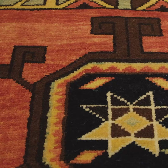 この絨毯は、伝統的な染色方法によって生み出された8色の自然色が調和しています。 Natural Wool Color 320: 羊そのままの色 Natural Wool Color 37: 羊そのままの色 Dark Brawn 316: 羊そのままの色 Khaki 413: ホザキモクセイソウ Congo Pink 306: 茜 Pale Green 439: カモミール - 藍 Turquoise 330: トウダイグサ - 茜 - 藍 - クルミの殻 Navy Blue 432: 藍 - ザクロの皮