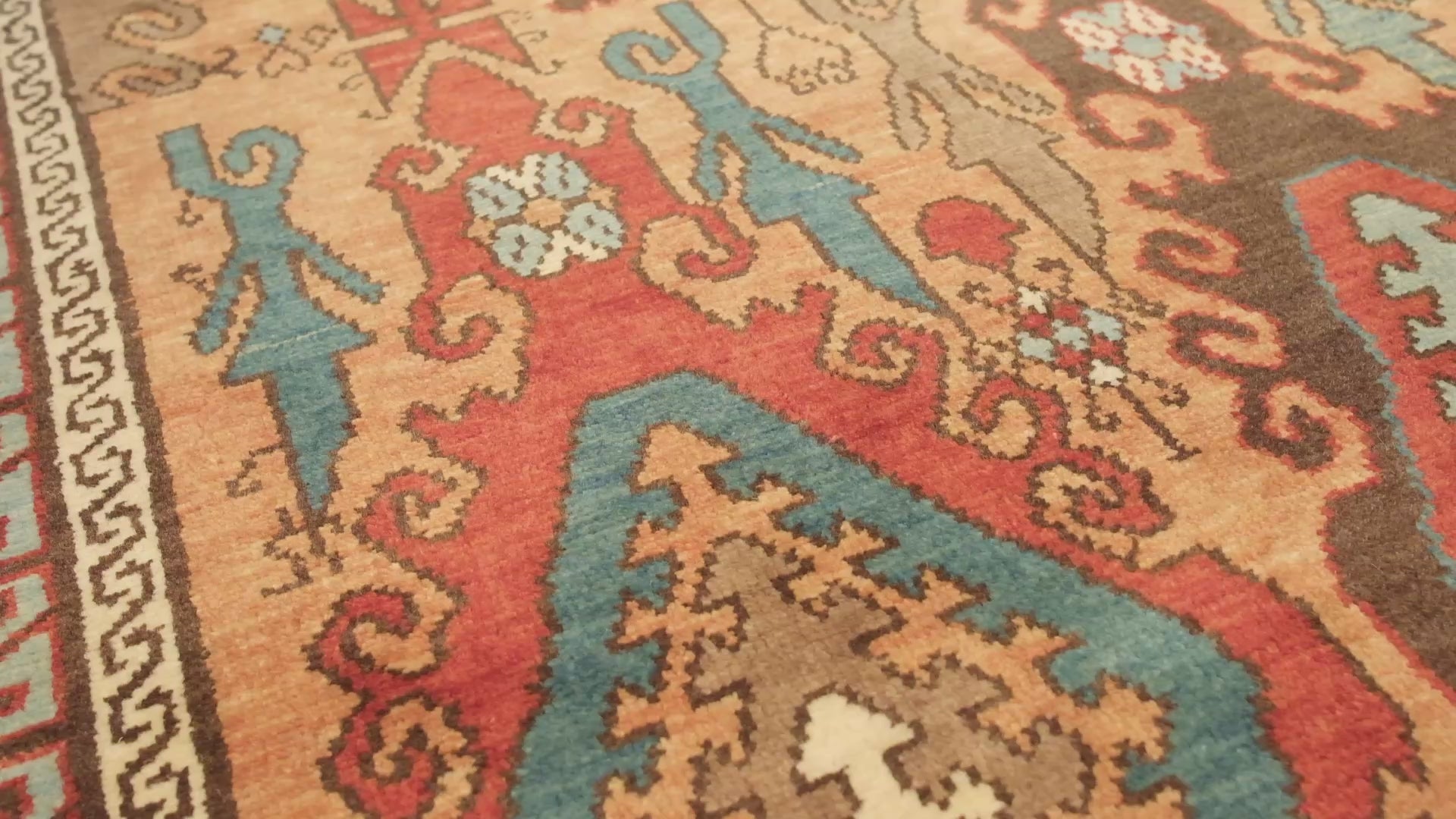 この絨毯は、伝統的な染色方法によって生み出された8色の自然色が調和しています。 Natural Wool Color 320: 羊そのままの色 Bistre Brown 411: ザクロの皮 - 茜 Salmon 536: 茜 Maroon 433: 茜 Arable Brown 430: 茜 Feldgrau 414: カモミール - 藍 Deep Viridian 448: Reseda Luteola - 藍 Opal 533: ヘナ - 藍