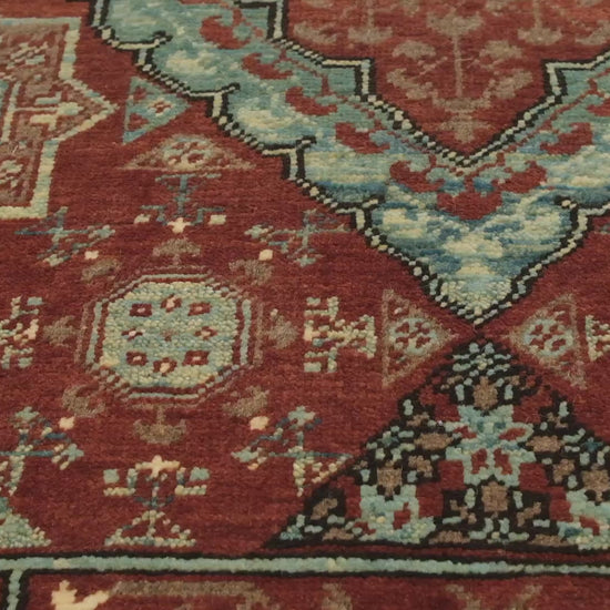この絨毯は、伝統的な染色方法によって生み出された6色の自然色が調和しています。 Natural Wool Color 320: 羊そのままの色 French Bistre 101: 羊そのままの色 Black Emerald 441: 藍 Dark Sienna 402: 茜 - ザクロの皮 - トウダイグサ - クルミの殻 Feldgrau 414: カモミール - 藍 Turquoise 330: トウダイグサ - 茜 - 藍 - クルミの殻