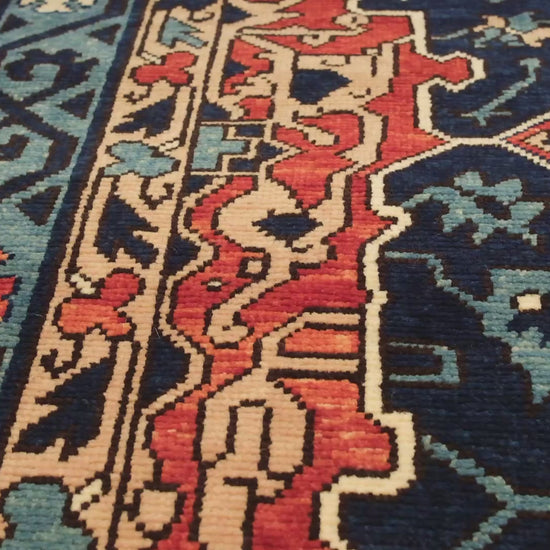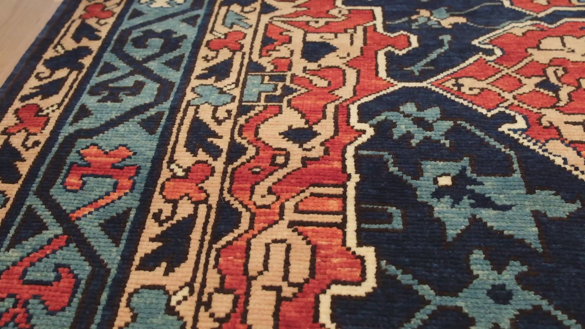 この絨毯は、伝統的な染色方法によって生み出された6色の自然色が調和しています。 Natural Wool Color 320: 羊そのままの色 Black Chocolate 434: ザクロの皮 - トウダイグサ - 茜 Burlywood 135: トウダイグサ - 茜 Maroon 433: 茜 Cadet Blue 26: トウダイグサ - 藍 Dark Blue 21: 藍