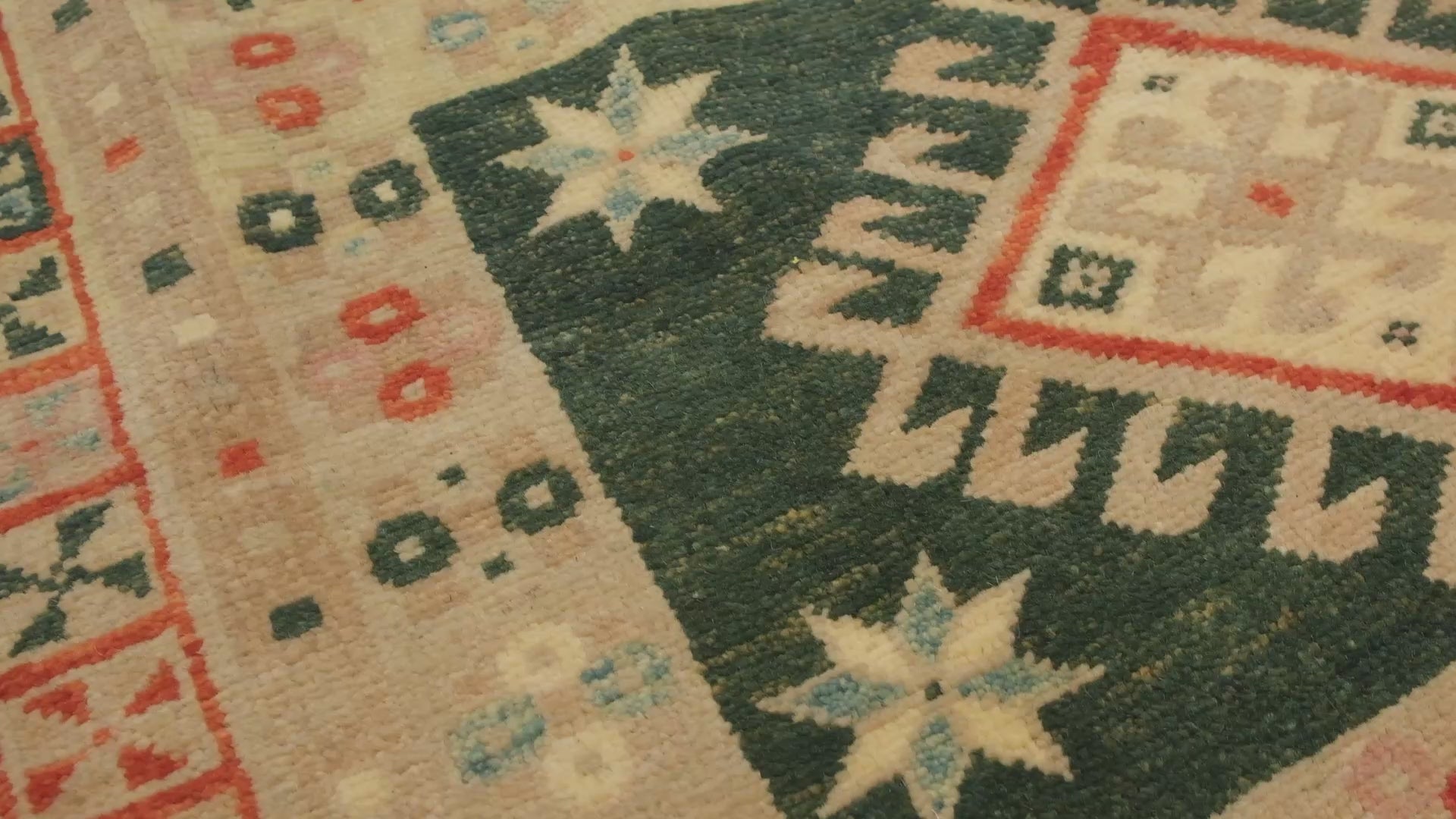 この絨毯は、伝統的な染色方法によって生み出された8色の自然色が調和しています。 Gold Sand 215: モクセイソウ - 茜 Burlywood 135: トウダイグサ - 茜 カラー514 514: Source unknown Melancholy 122: トウダイグサ - 茜 Scarlet 5: 茜 Russian Green 418: ヘナ - 藍 カラー534 534: Source unknown Cadet Blue 26: トウダイグサ - 藍