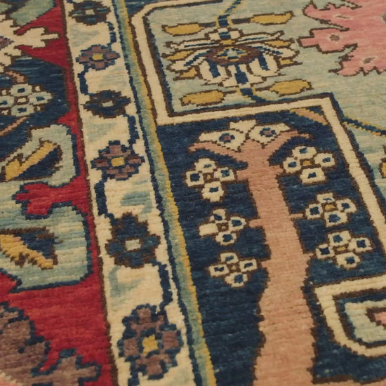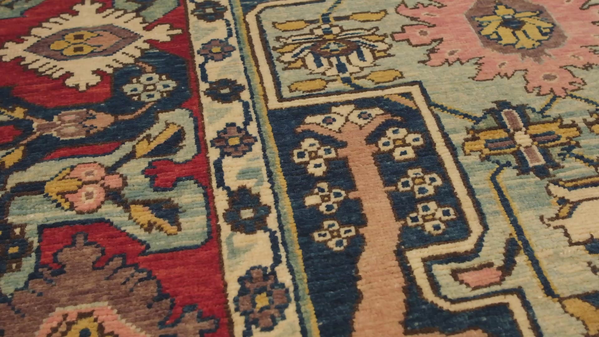 バルビエリ・ツリーデザイン・カーペットは、東トルコの熟練した職人によって手織りされた、17世紀のホラーサン地方のカーペットデザインにインスパイアされた、顕著な現代リバイバル作品です。元々のカーペットの所有者であるジェノヴァのピエロ・バルビエリの名を冠するこの作品は、歴史的な正確さとデザインの複雑さに非常に優れています。レイアウトは、小さな多葉メダリオンと大きな相互カルトーシュを交互に配置し、それぞれが繊細なパルメットモチーフで飾られています。広いメダリオンからは2種の木が生い茂り、カーペットにダイナミックで自然な魅力を与えています。境界線は簡略化され、再現されたダイヤモンド形のロゼットが頑丈なフォークアラベスクで繋がれており、北ペルシャのスタイルからのユニークなアダプションが見受けられます。このカーペットは、チャールストン・グリーン(ワラジムシ・藍を由来とする)やビストル・ブラウン(ザクロ・茜を由来とする)など、選び抜かれた11色を使用しており、歴史的なルーツの本質を保ちつつ、鮮やかな天然染料を使用して新鮮かつ明るい見た目を実現しています。