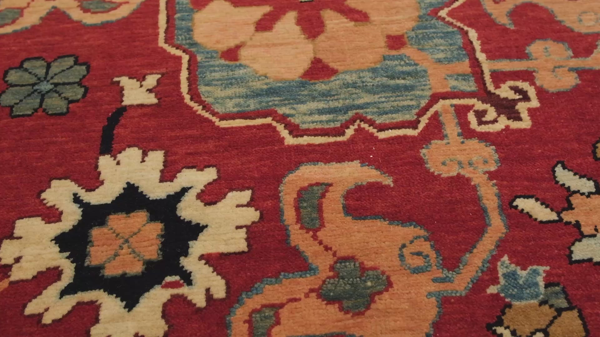 「パルメットとフラワーズ・ラティス・ラグ」を誇りを持って紹介します。この現代的な作品は、時間を超越したペルシャの芸術性を現代復興したものであり、アララト・ラグズの職人によって東トルコで手織りされました。ビジャール地方のアンティークデザインから着想を得ており、19世紀以来の強固で精巧な織りが特徴です。サイズは6フィート0インチ×7フィート10インチ(184 cm×240 cm)で、密な対称結びの技法が特徴で、耐久性と豪華な4 mmパイル高さを実現しています。素材は天然で手紡ぎされたウールで、インジゴ、ザクロ、茜根、クルミの殻などの伝統的な物質から派生した11色の鮮やかな色合いで染色されています。これらの色は調和のとれたブレンドを形成し、各色が時間とともにその深みと鮮やかさを保持します。「パルメットとフラワーズ・ラティス」のパターンは、大きな側面のパルメットと小さな花々が交互に配置され、17世紀のペルシャのカーペットにさかのぼり、18世紀と19世紀を通じて東ペルシャとコーカサスの文化的なタペストリーで人気がありました。このラグは、美的魅力だけでなく、地域の文化的歴史と芸術的進化との深いつながりを示すものです。