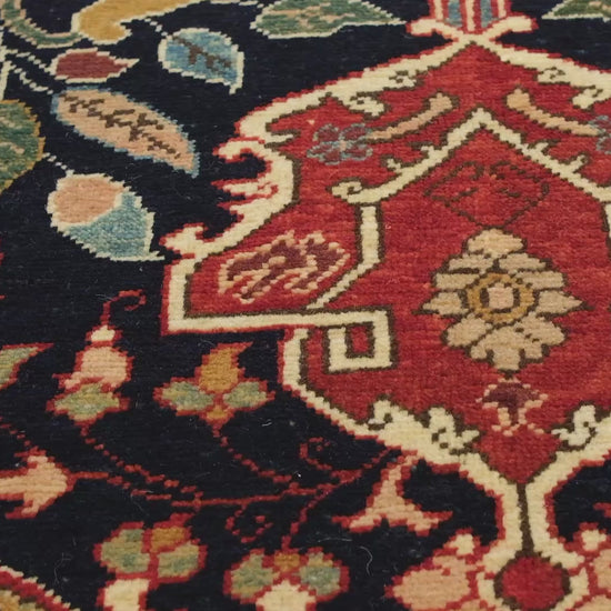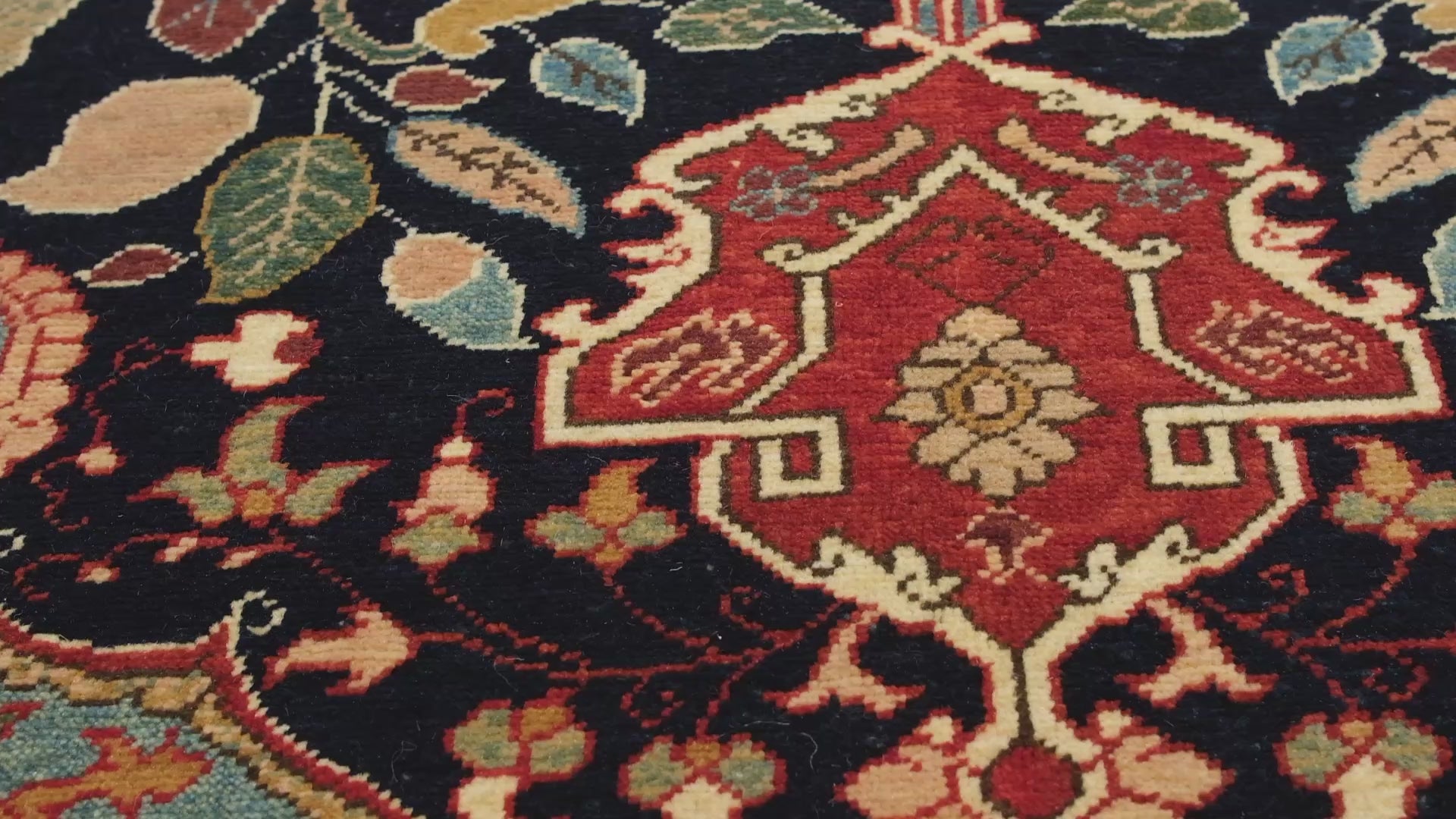 この現代のヘリズ・メダリオン・ラグ・梨のデザインは、北西ペルシアのヘリズ地域の歴史的な織り伝統を復活させ、東トルコのアララト・ラグズで熟練の手法により手織りされています。初期の19世紀にさかのぼるオリジナルのヘリズデザインは、その堅牢で幾何学的な美学で知られており、通常は元素的な色合いと角ばった線が曲線のモチーフをより直線的な形に変える特徴があります。この再解釈では、中央のメダリオンが複雑な梨、花、パルメットのパターンに囲まれ、蓮のパルメットや格子デザインなどの古典的なイランの影響を反映しています。このラグは、マダールートから作られたインペリアルレッドやザクロとインディゴから作られたネイビーブルーを含む、12種類の天然色で特別な構成を持っており、アララト・ラグズが全て天然のウールと植物性染料を使用することへのコミットメントを強調しています。ヘリズの織り手の歴史的な直線への好みを復活させたこのラグは、現代の家庭に文化的な芸術作品としての体現を提供します。