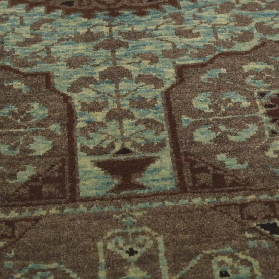 豊かなムスリム美術伝統から着想を得た「マムルークのカップモチーフラグ」は、トルコ東部のアララト・ラグスによって手織りされています。この現代のラグは、15世紀後半のエジプト、マムルーク朝カイロ発祥の作品から採用された複雑なデザインを特色とします。緑底の八角形レイアウトが中心のモチーフであり、多弁のロゼットの芯を通じて深みが増す青い多葉のメダリオンで囲まれています。メダリオンの周りには、隔離された多角形とパピルスモチーフが古代芸術の本質を捉え、特徴的なチェッカーボードの角がスタイリッシュな蓮の花模様を描いています。このラグは、特別なグレー洗浄、ユーカリと藍から抽出されたコケ緑、天然の羊毛色、そして羊の自然なダークブラウンの4色を使用しており、自然染料と本物の織り技法への取り組みを強調しています。