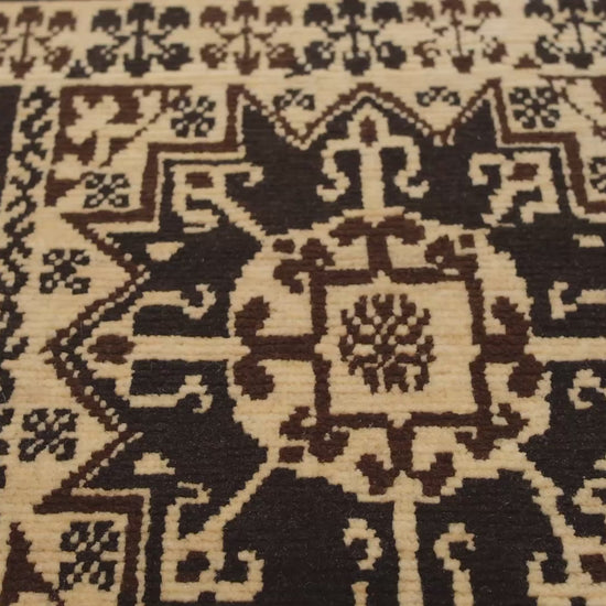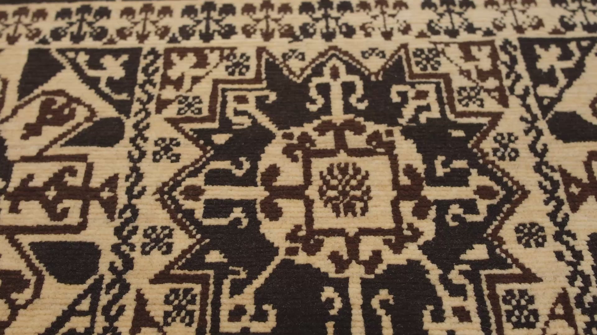 この絨毯は、伝統的な染色方法によって生み出された3色の自然色が調和しています。 Natural Wool Color 320: 羊そのままの色 Natural Wool Color 37: 羊そのままの色 Dark Brawn 316: 羊そのままの色