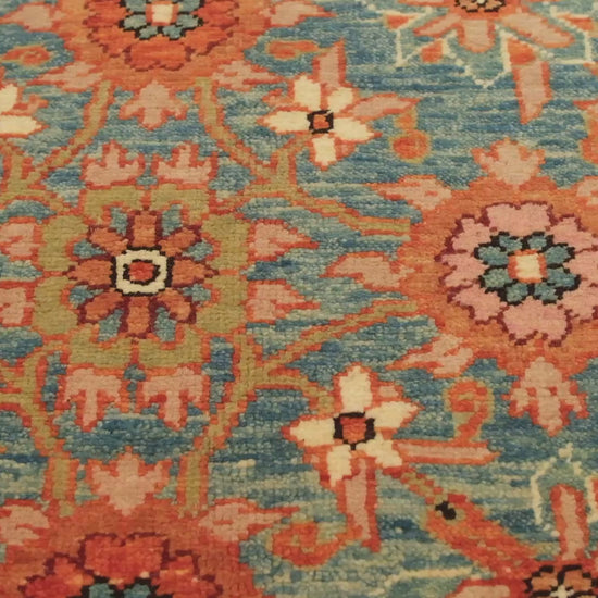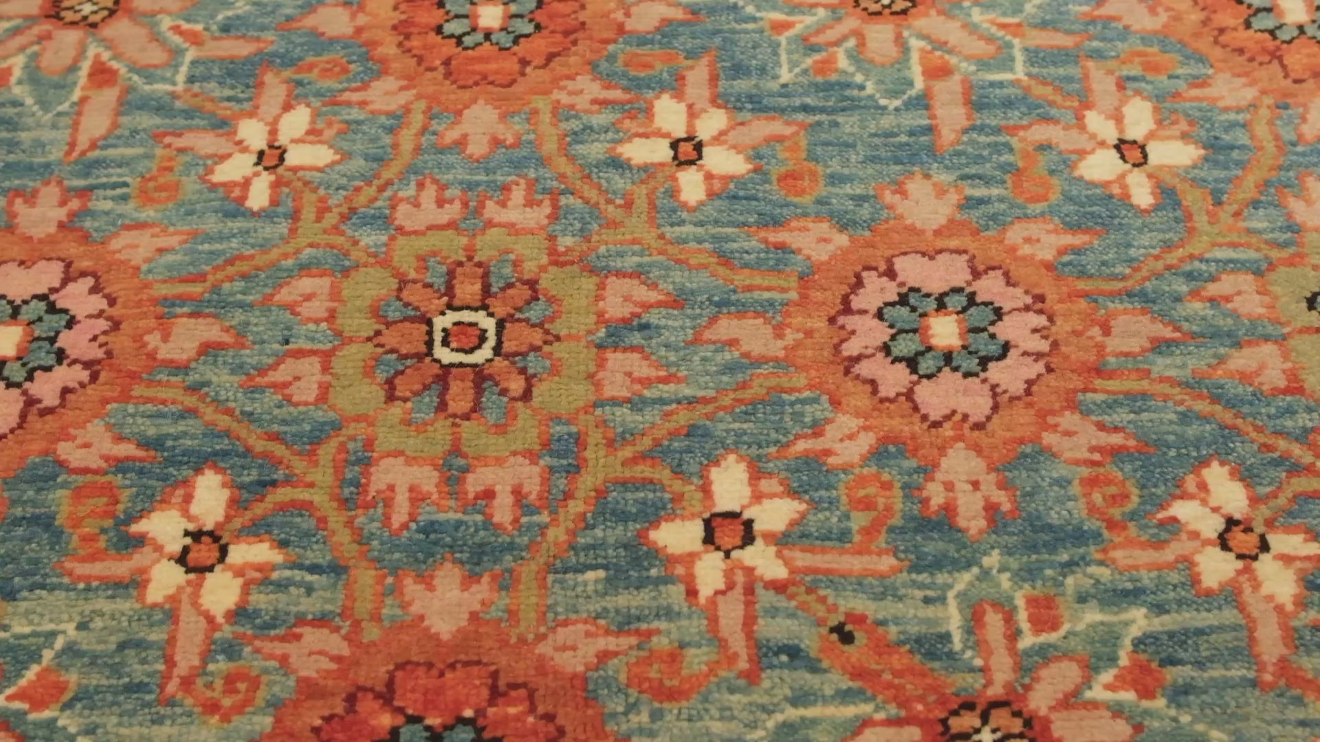 19世紀中頃のミナ・カーニデザインを現代的に再解釈したこの絨毯は、伝統のエレガンスを隅々まで織り込んでいます。南クルディスタンのコリヤイ地方発祥の此のデザインは、円形の蔓や花々を配したデリケートなアスターの花の格子模様が特徴で、無限に広がるキャンバスを思わせます。東トルコの職人が古典的な技法を用い、全て自然由来の染料で慎重に手織りした作品です。マダーレートから作られたルファス色や、スパージとマダーレート、インディゴ、クルミの殻を組み合わせた特色のダスティーターコイズが、静謐な魅力を更に引き立てます。