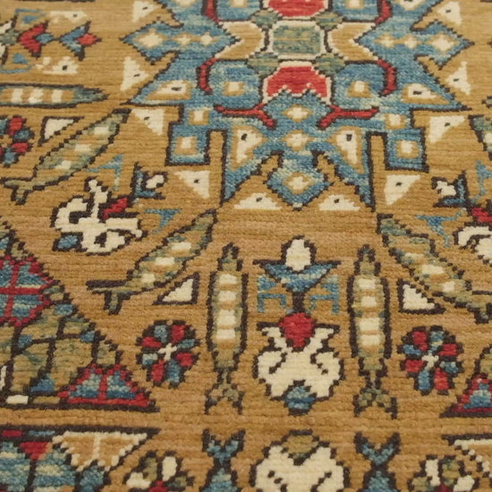 この絨毯は、伝統的な染色方法によって生み出された8色の自然色が調和しています。 Natural Wool Color 320: 羊そのままの色 Cocoa Brown 109: 羊そのままの色 Sunray Color 405: ヘナ Imperial Red 415: 茜 Dark Sienna 401: 茜 - ザクロの皮 - トウダイグサ Pine Tree 420: ヘナ - 藍 Yellow Green 419: ヘナ - 藍 Cadet Blue 26: トウダイグサ - 藍