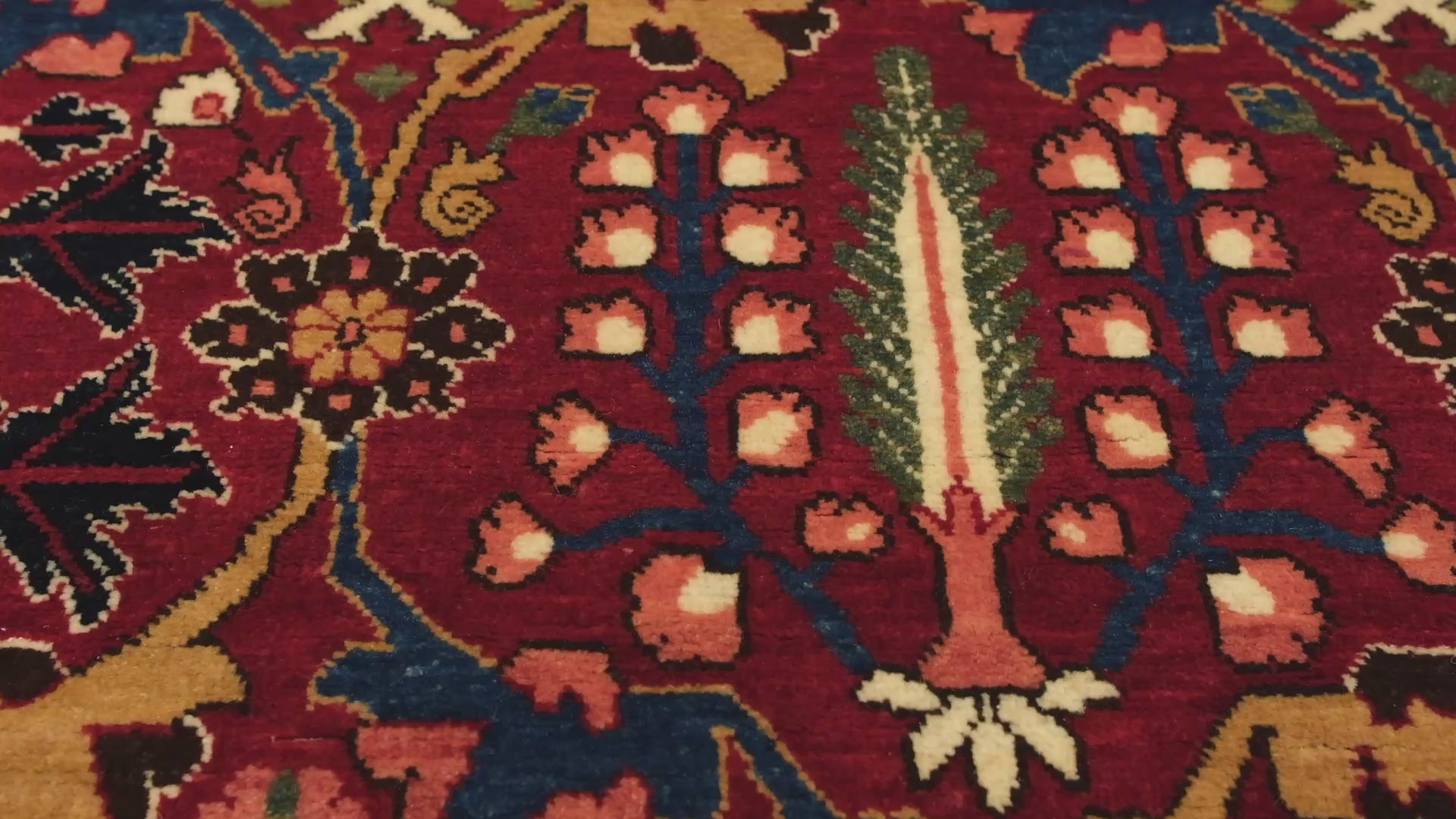 この絨毯は、伝統的な染色方法によって生み出された11色の自然色が調和しています。 Natural Wool Color 320: 羊そのままの色 Natural Wool Color 37: 羊そのままの色 Dark Brawn 316: 羊そのままの色 Sunray Color 405: ヘナ Cameo Pink 436: Synthetic Dye Falu Red 416: 茜 Dark Salmon 310: 茜 - クルミの殻 Russian Green 418: ヘナ - 藍 Pale Green 439: カモミール - 藍 Navy Blue 432: 藍 - ザクロの皮 Green Blue 344: トウダイグサ - 茜 - 藍