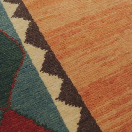 このモダンデザイン・ギャッベラグは、1930年代に始まったデザインを現代風に復活させたもので、伝統的なペルシャの手工芸の魅力が生きています。ファールス地方から始まった「ギャッベ」という名前は「生の」「自然の」と訳され、その未加工の美しさがこのラグに表現されています。アララト・ラグスの熟練した職人が東トルコで手織りし、代々受け継がれてきた技法を用いています。部族や幾何学模様を大胆で鮮やかな色合いで描き出し、その色彩にはマダーレース、スパージ、インディゴ、クルミ殻、カモミールなどの天然染料を使用。動物や抽象的な形を含む遊び心ある非対称性と不規則なモチーフが、このラグにユニークで素朴な魅力を加え、どんなモダンな室内にも優れた存在感を示す逸品です。