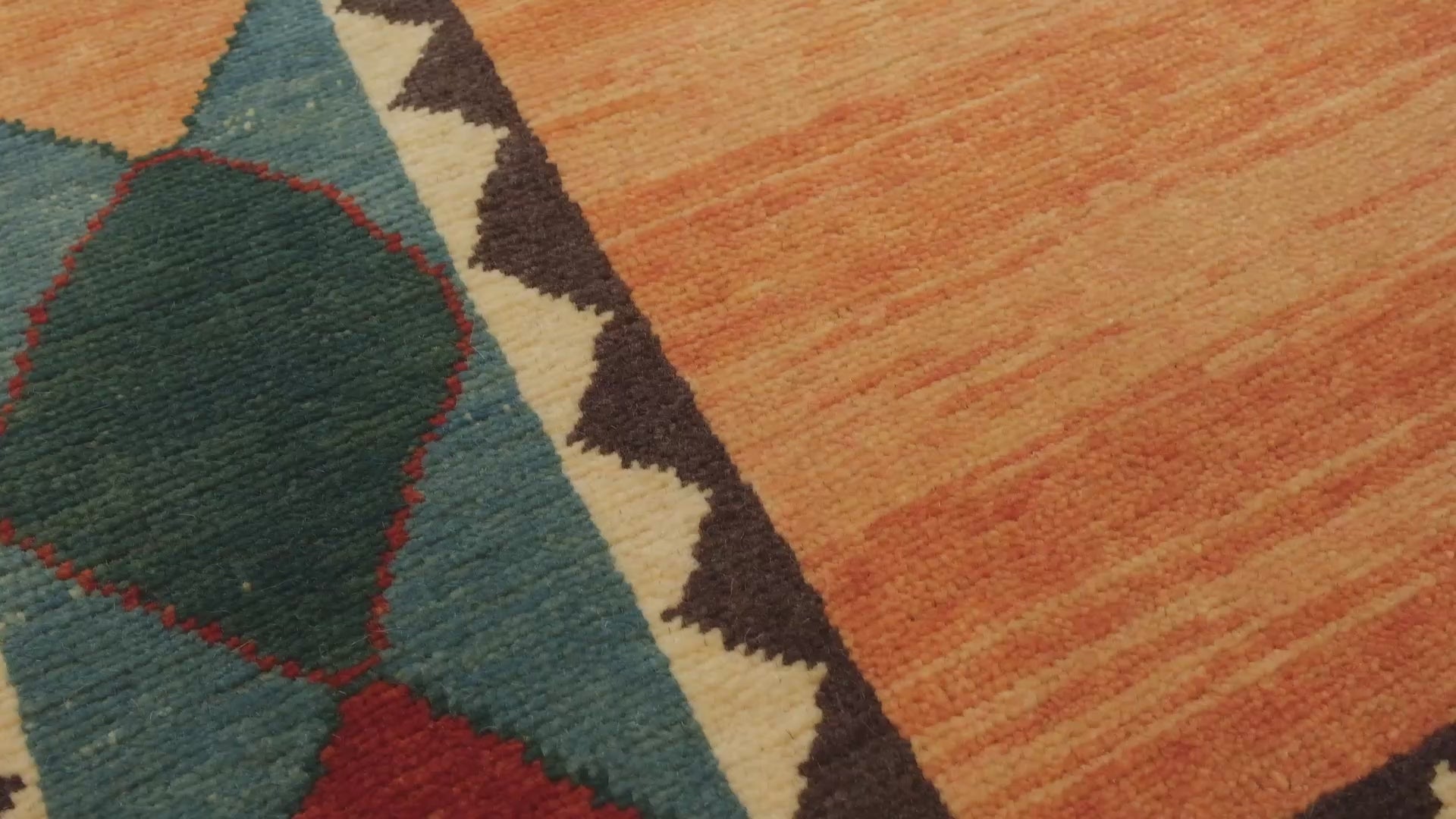 この絨毯は、伝統的な染色方法によって生み出された7色の自然色が調和しています。 Natural Wool Color 320: 羊そのままの色 Dark Wood Grain 410: ザクロの皮 - 茜 - トウダイグサ Khaki 413: ホザキモクセイソウ Bengala Red 428: 茜 Fiery Orange 6: 茜 Emerald Green 407: カモミール - 藍 Dusty Turquoise 340: トウダイグサ - 茜 - 藍 - クルミの殻