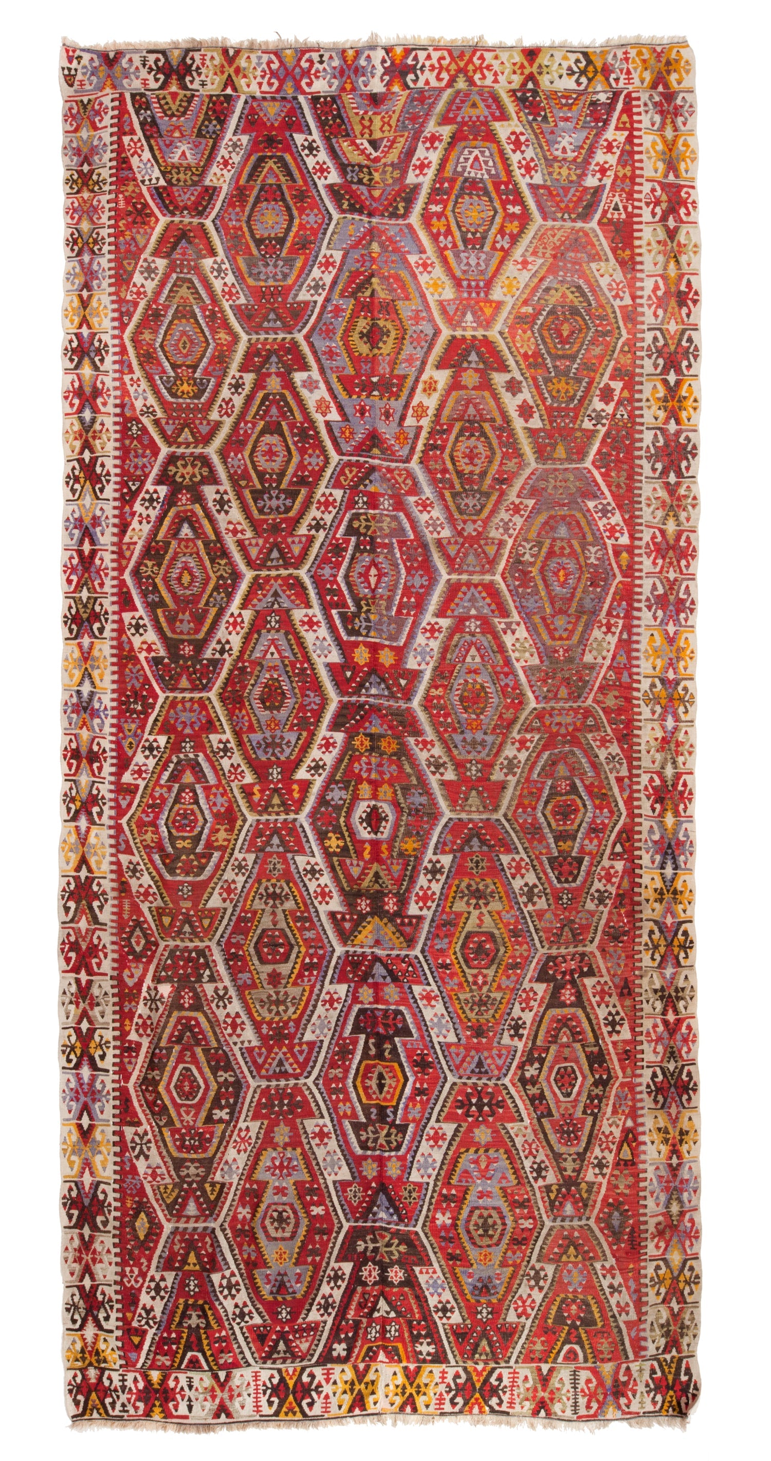 竜の背中のように、生命のうねりと生きた温かさを感じられるキリムです。