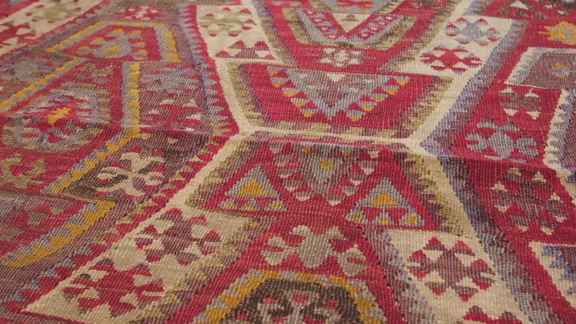 左右の色に明るさの違いがありますが、キリムではこれこそが天然の草木染めの証として、評価されるポイントでもあります。