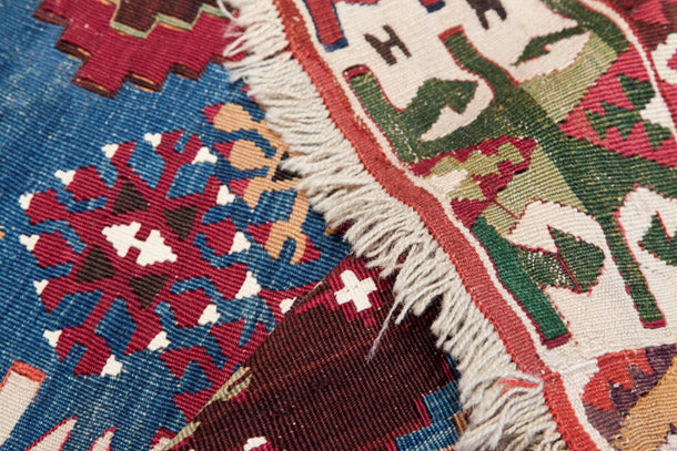 まるで自然界から染めうるすべての色を染め上げ、それらを惜しみなく使い、織り込んだような、贅沢なキリムです。