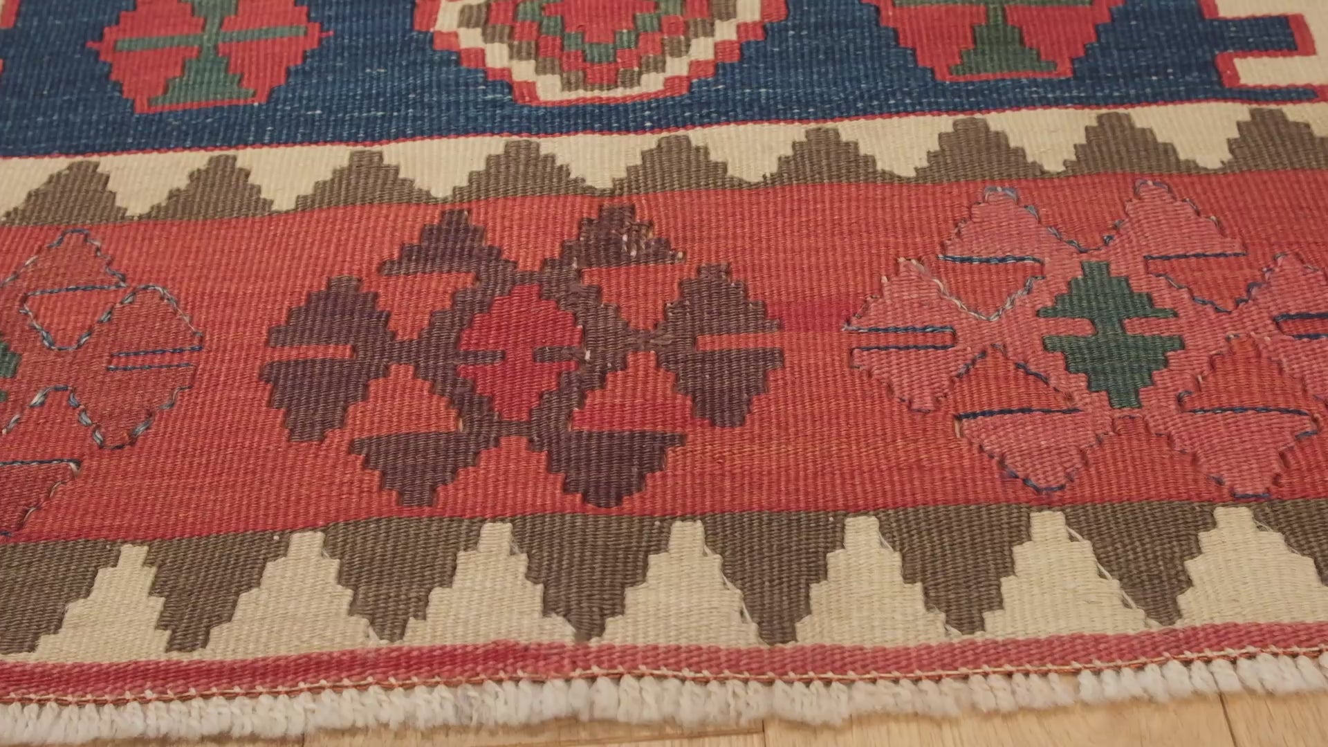 キリムらしい色彩の美しさと、オールドの風合いをベストな状態で感じられる一枚です。