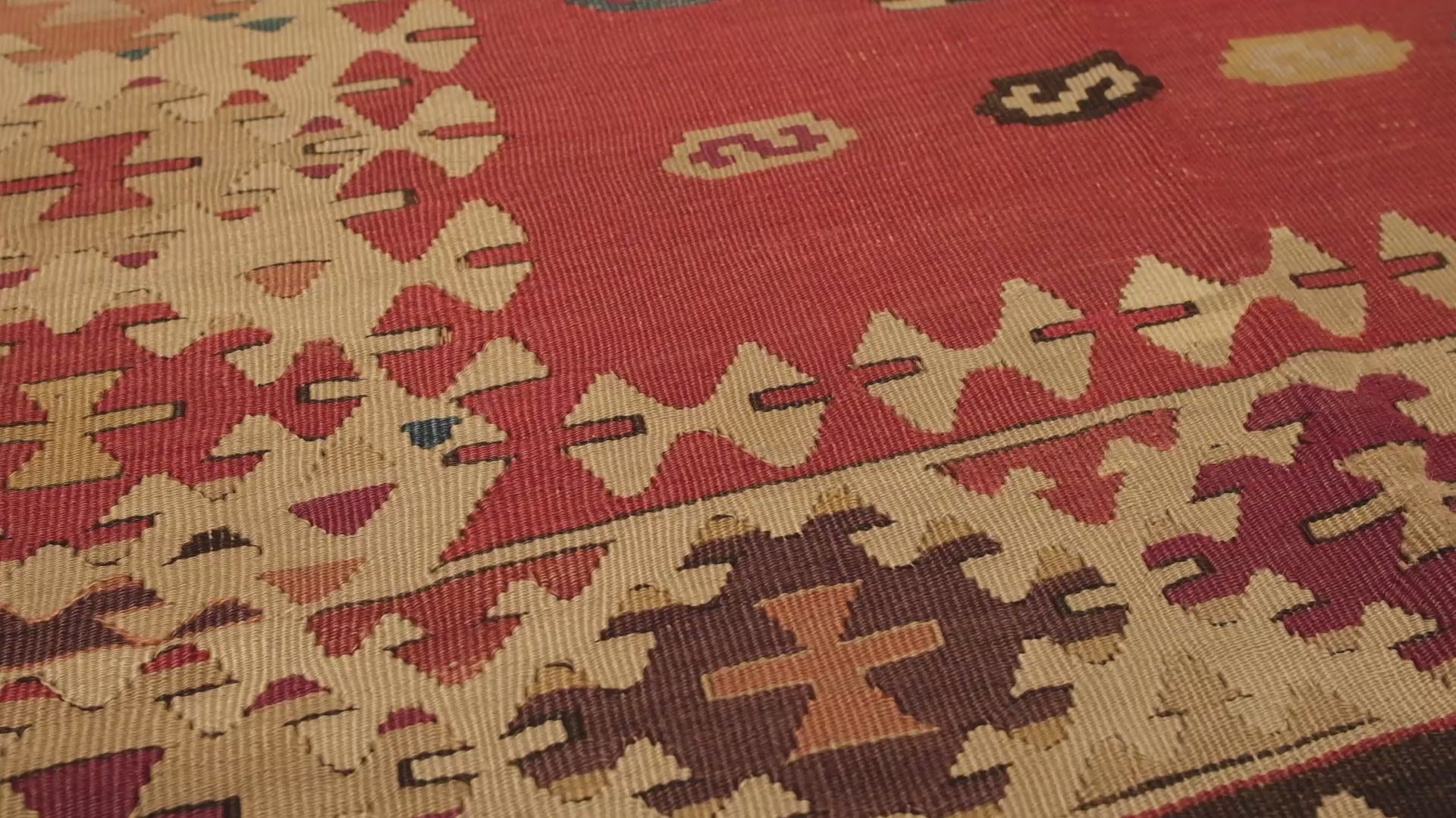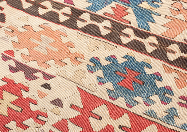 細く撚られた繊細な糸による、素晴しく細やかな織りのキリムです。