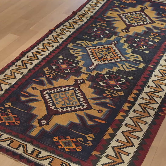 このように大判で、大胆な模様は、この地域のキリムの特徴です。