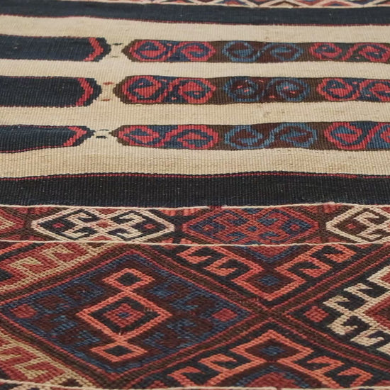 保存状態: アンティークキリムとして、経年による風合いが感じられますが、全体的に良好な状態を保っています。適切な手入れを行うことで、さらに長くその美しさを楽しむことができます。