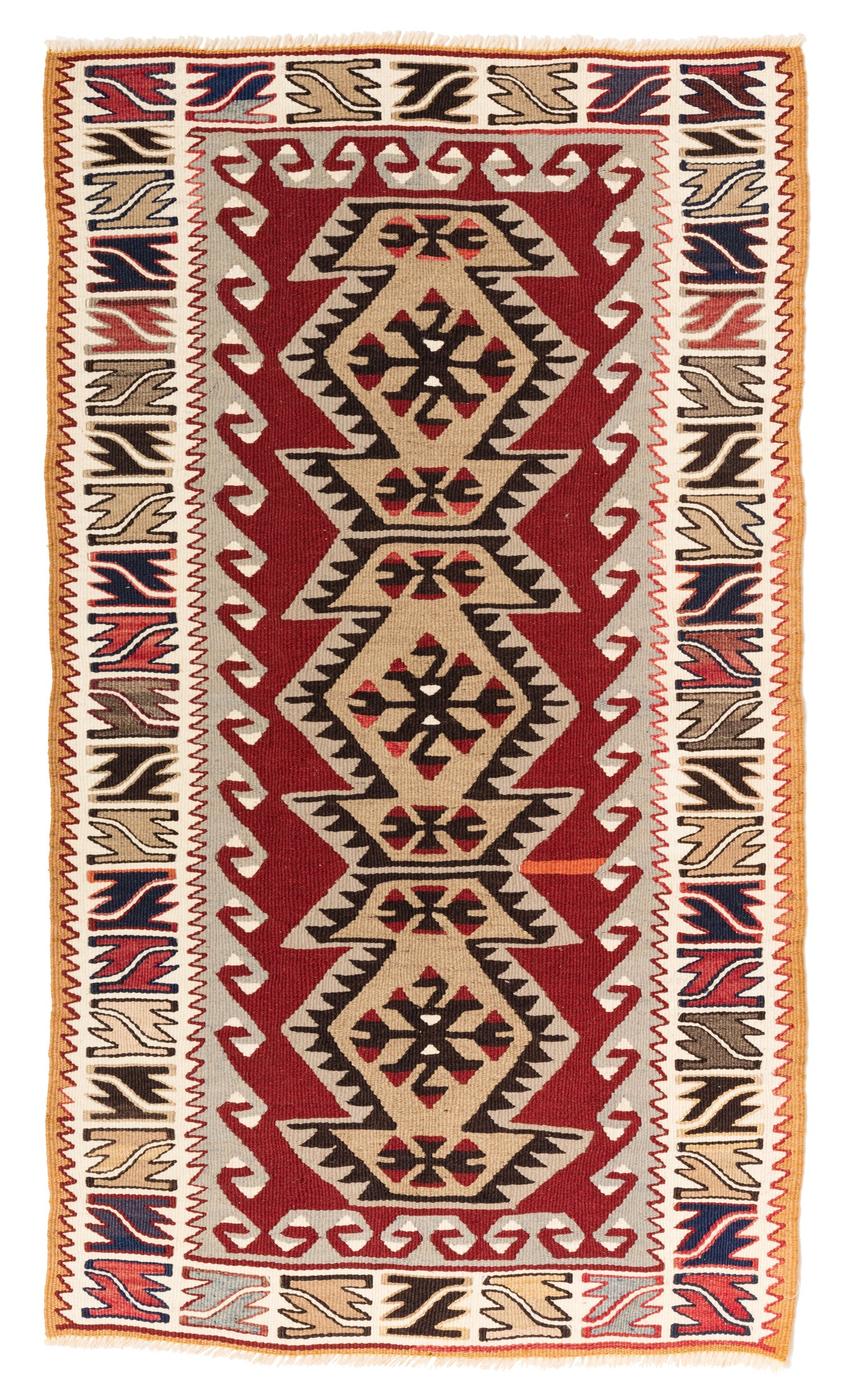 トルコ中部、カッパドキアに近いカイセリの村バフチェジクで作られたニューキリムです。