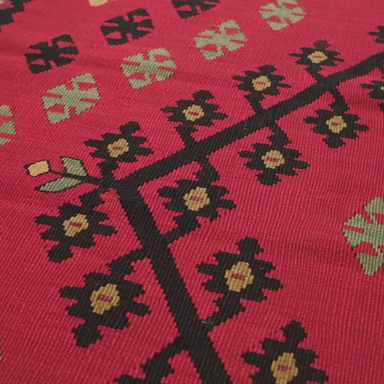 素材と技法: 高品質なウールを使用し、熟練した職人による手織り技法で丁寧に仕上げられています。シャルキョイ地方の織り手たちは、代々受け継がれてきた技術を駆使し、耐久性と美しさを兼ね備えたキリムを制作しています。