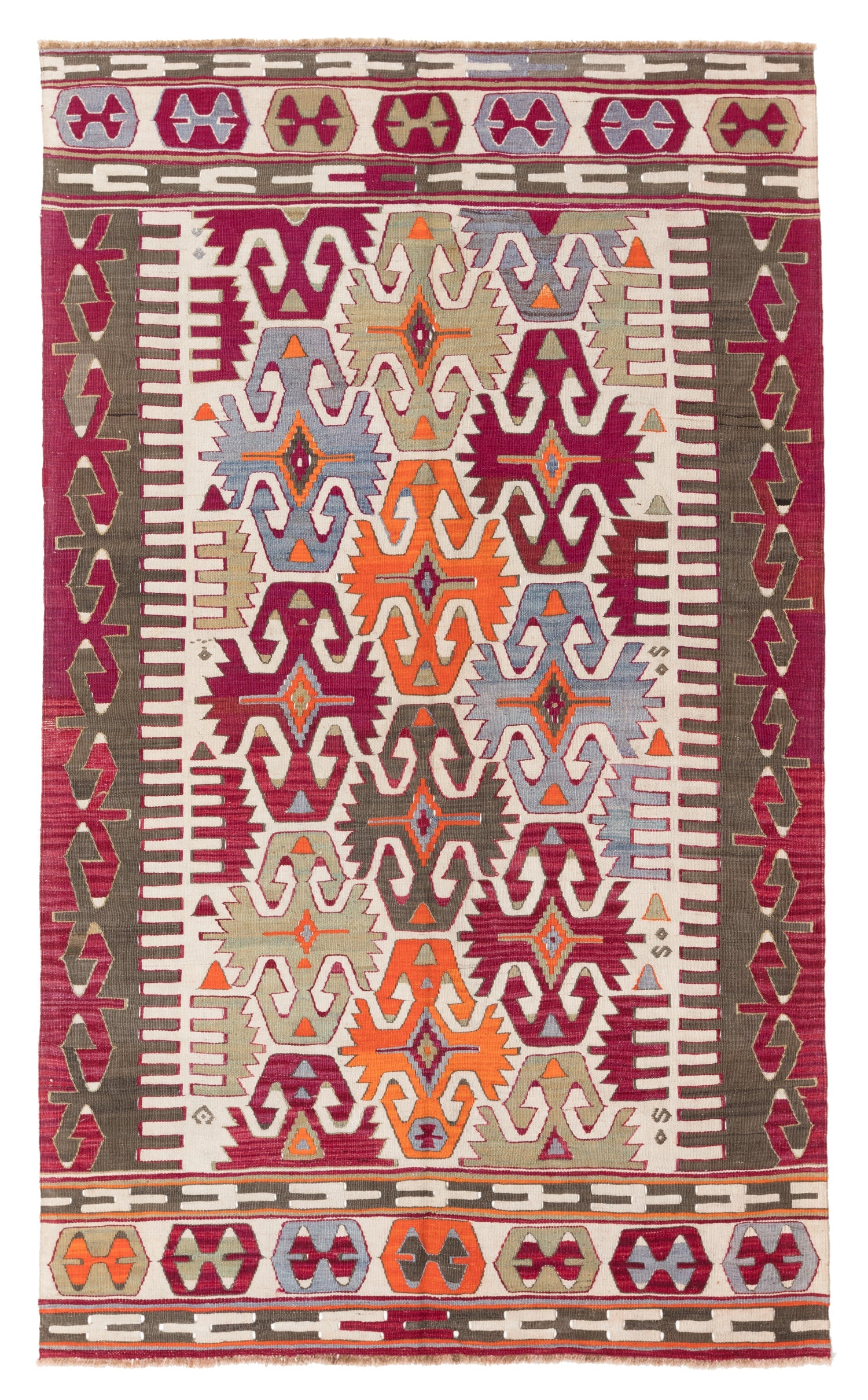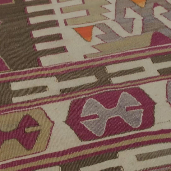 用途: このキリムは、リビングルームやベッドルームのアクセントとして、また壁掛けとしてもお使いいただけます。その独特のデザインと色彩は、空間に温かみと個性をもたらします。