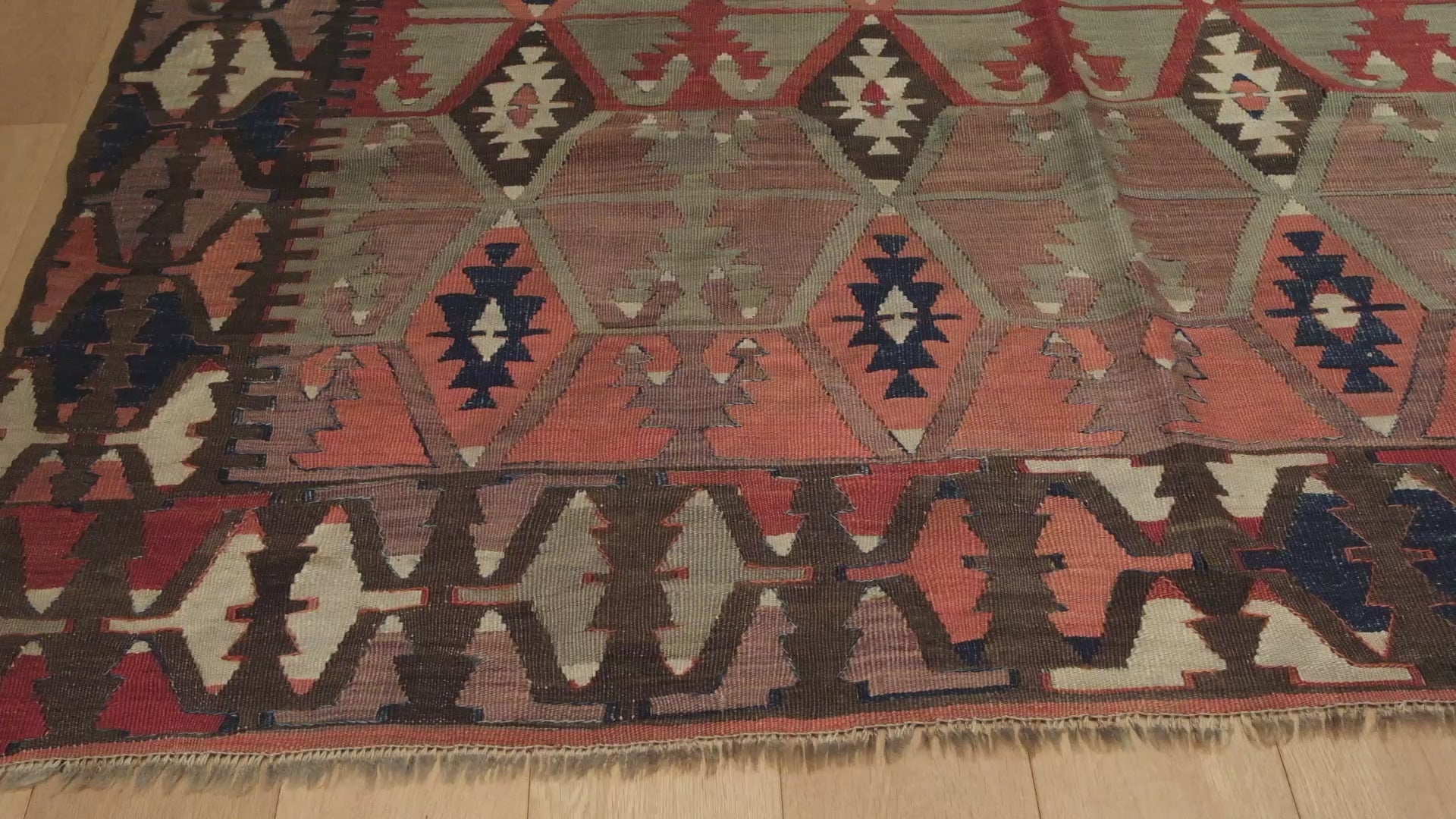 保存状態: アンティークキリムとして、経年による風合いが感じられますが、全体的に良好な状態を保っています。適切な手入れを行うことで、さらに長くその美しさを楽しむことができます。