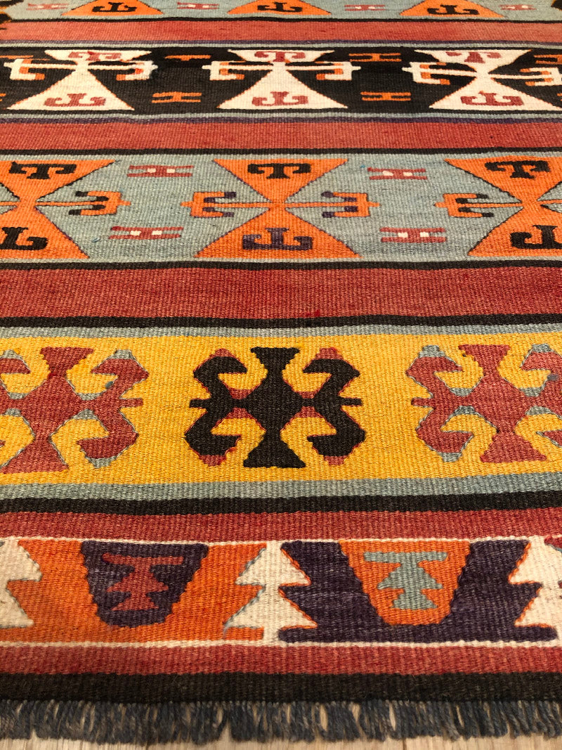 ご自分の手元でキリムを育てて行くのに最高のセミオールドで、手に取りやすいお値段である上に、本物の草木染めと手紡ぎの pure wool を楽むことができます。