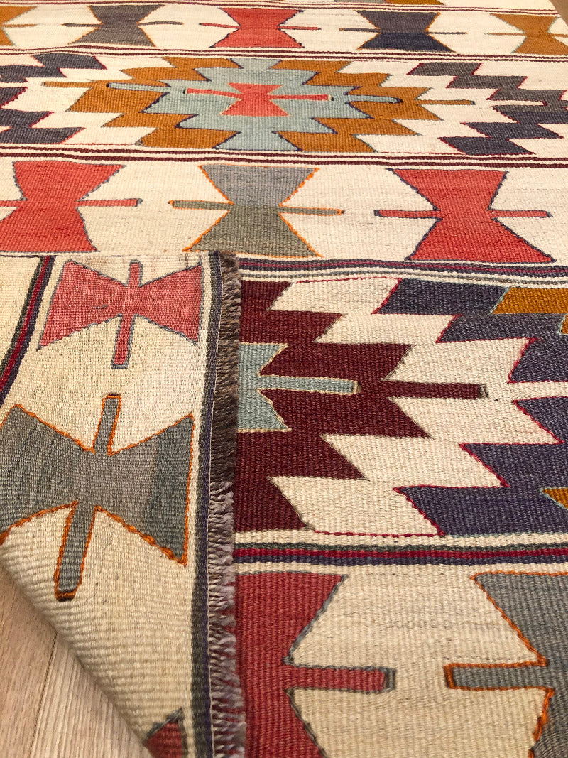 ご自分の手元でキリムを育てて行くのに最高のセミオールドで、手に取りやすいお値段である上に、本物の草木染めと手紡ぎの pure wool を楽むことができます。