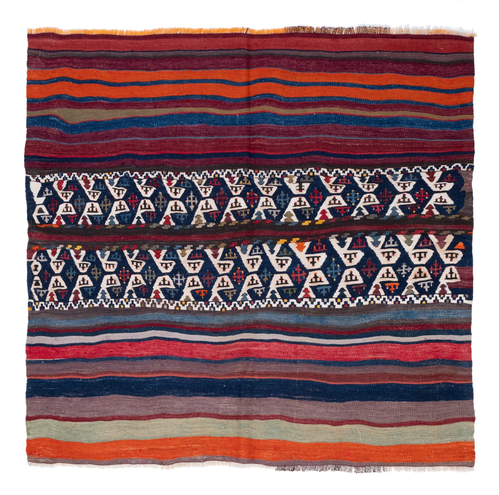 このマラティア チュヴァル(品番:K50061)は、トルコのマラティア地方で手織りされた平織りのキリムです。サイズは120cm x 113cmで、素材はウール100%が使用されています。