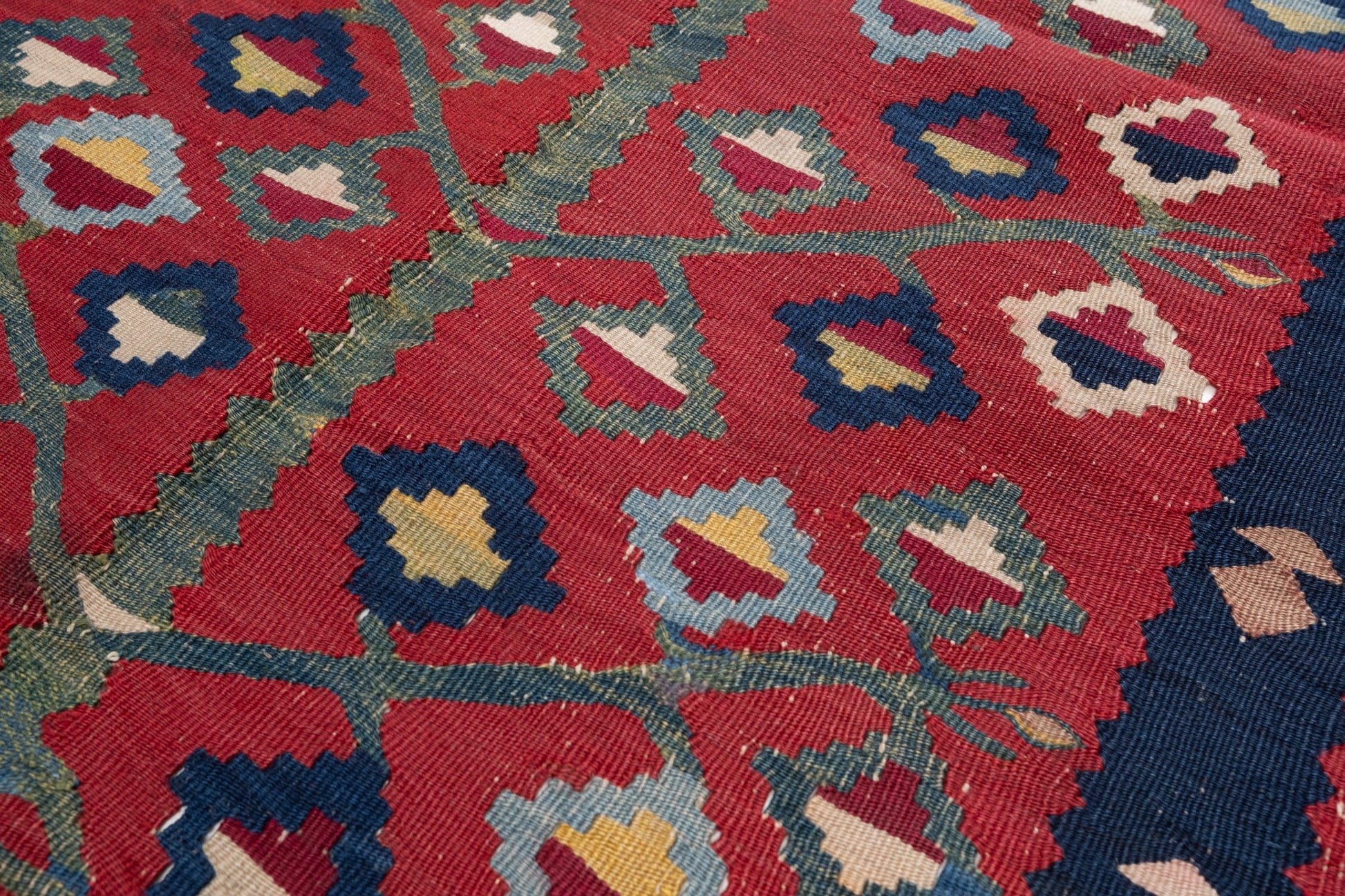 素材と技法: 緻密な織りと優れたディテールが、熟練の職人技を物語っています。このキリムは、バルカン地方の豊かな文化的遺産を示すものです。