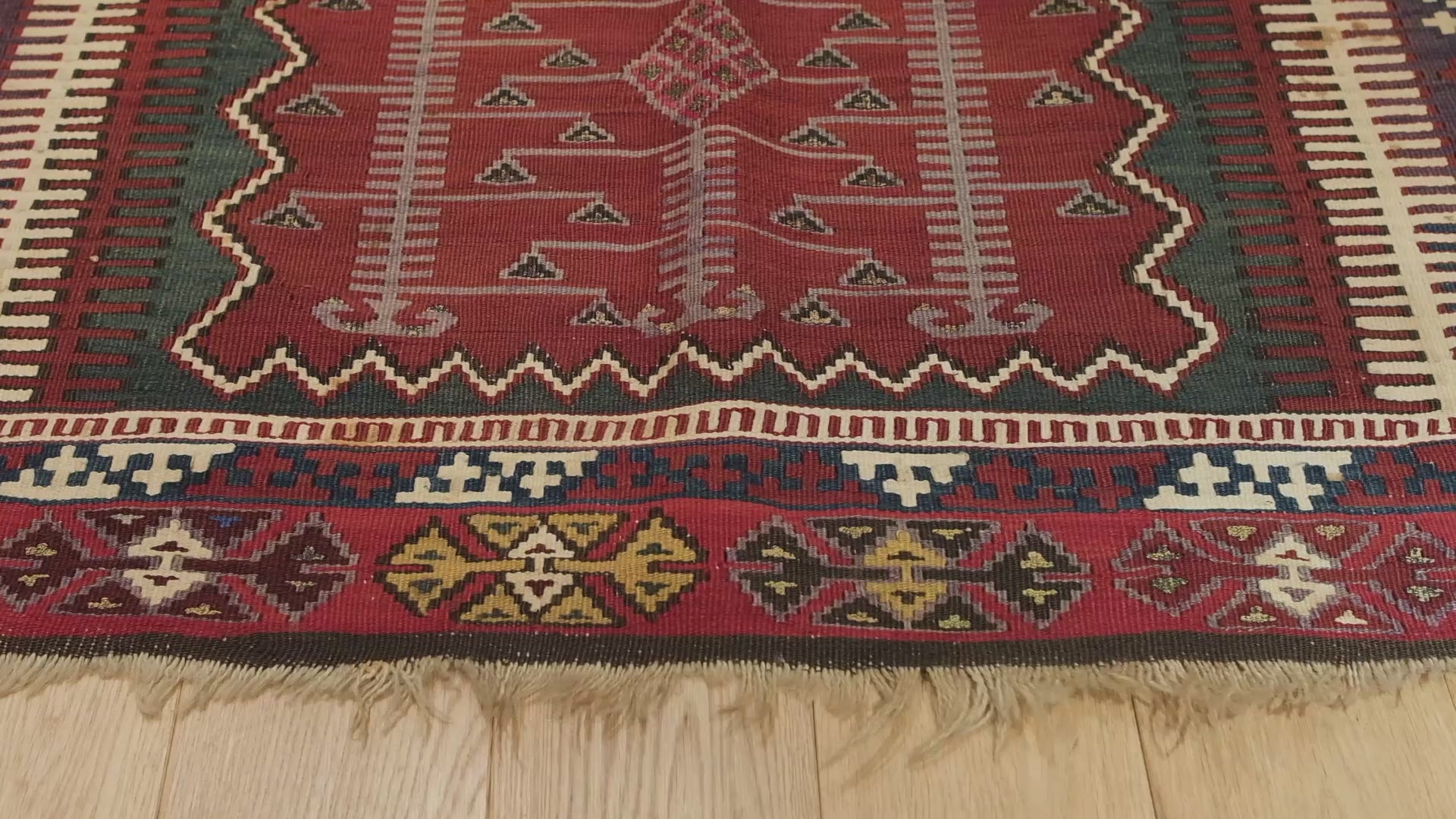 素材と技法: 高品質なウールを使用し、熟練の職人による手織りで精巧に作られています。平織りの技法により、柔軟性と耐久性を兼ね備えています。